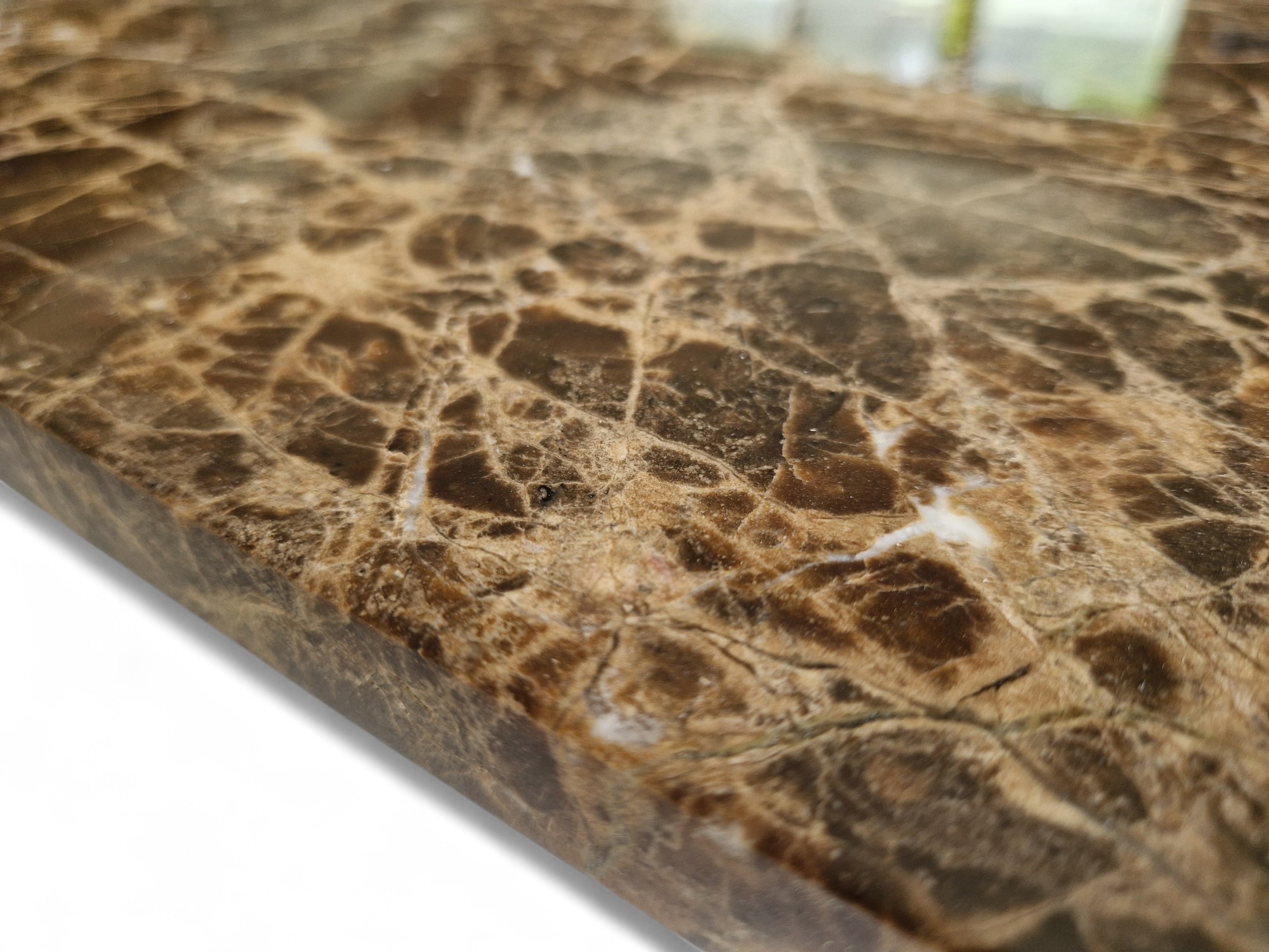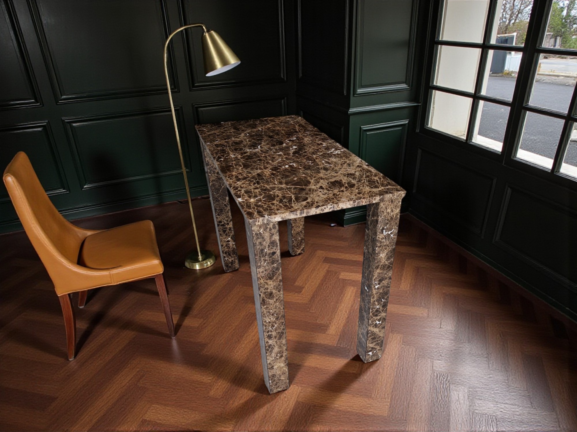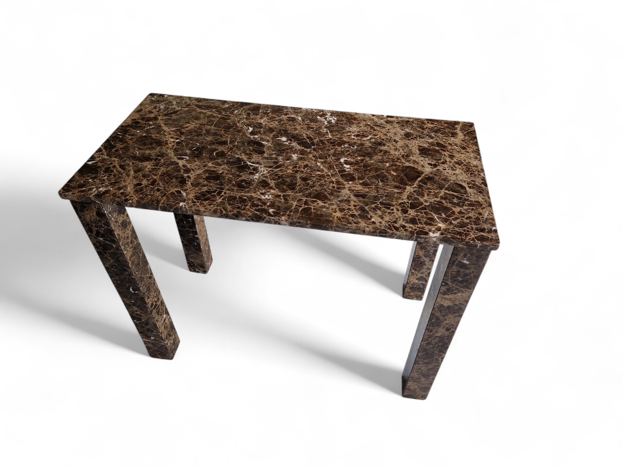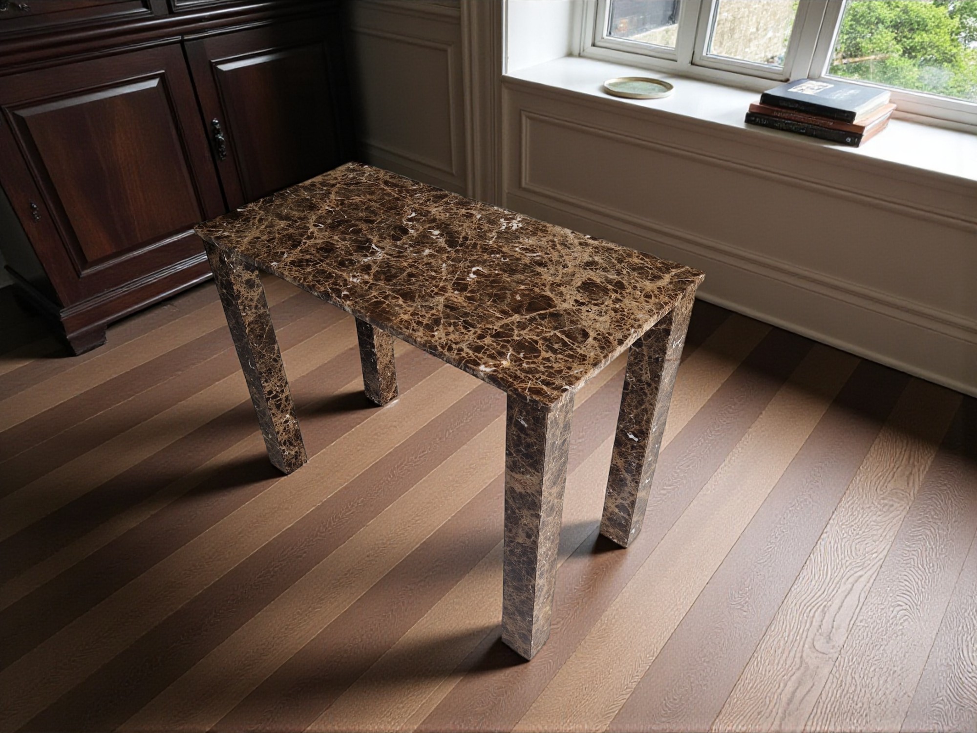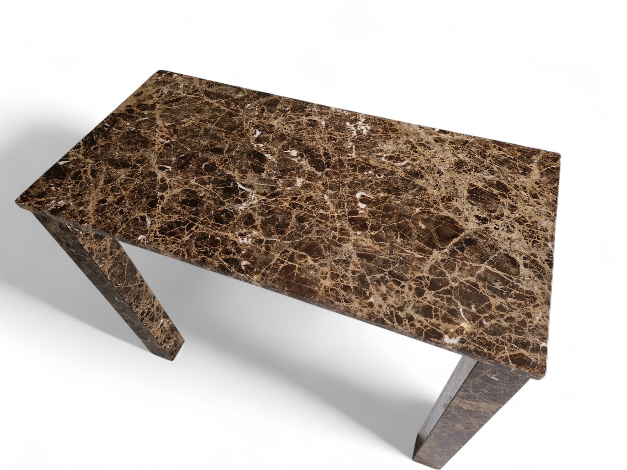 Biurko z marmuru Emperador Dark to elegancki i solidny mebel wykonany z naturalnego kamienia o ciepłych, brązowych odcieniach. Prosta, architektoniczna forma w połączeniu z polerowaną powierzchnią sprawia, że biurko doskonale sprawdzi się w nowoczesnych i reprezentacyjnych wnętrzach.