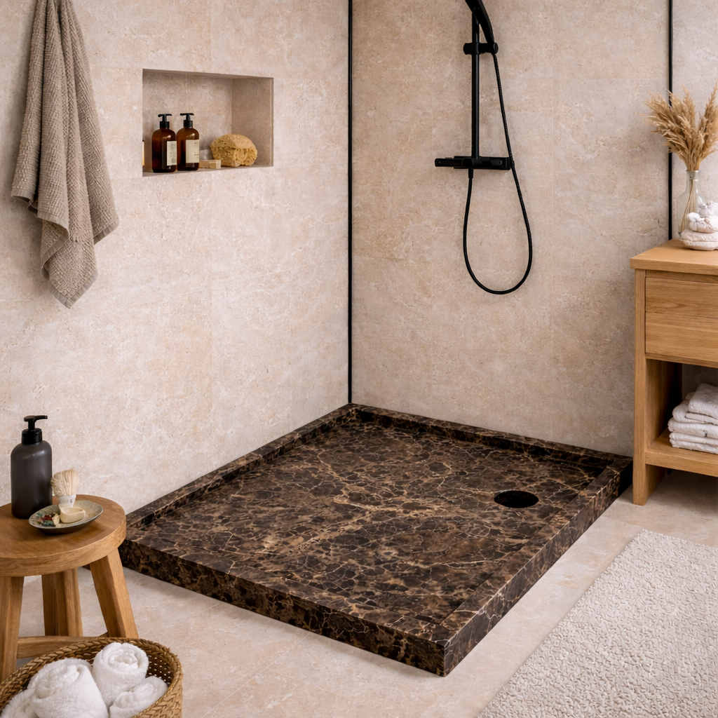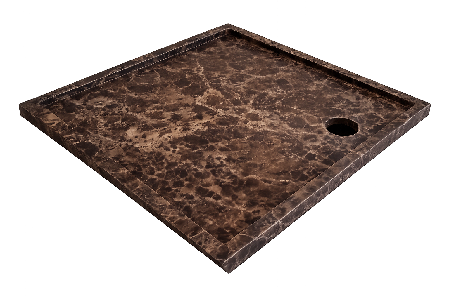 Brodzik marmurowy Emperador Dark to elegancki element łazienki wykonany z naturalnego kamienia o głębokim, czekoladowo-brązowym kolorze i subtelnym użyleniu.