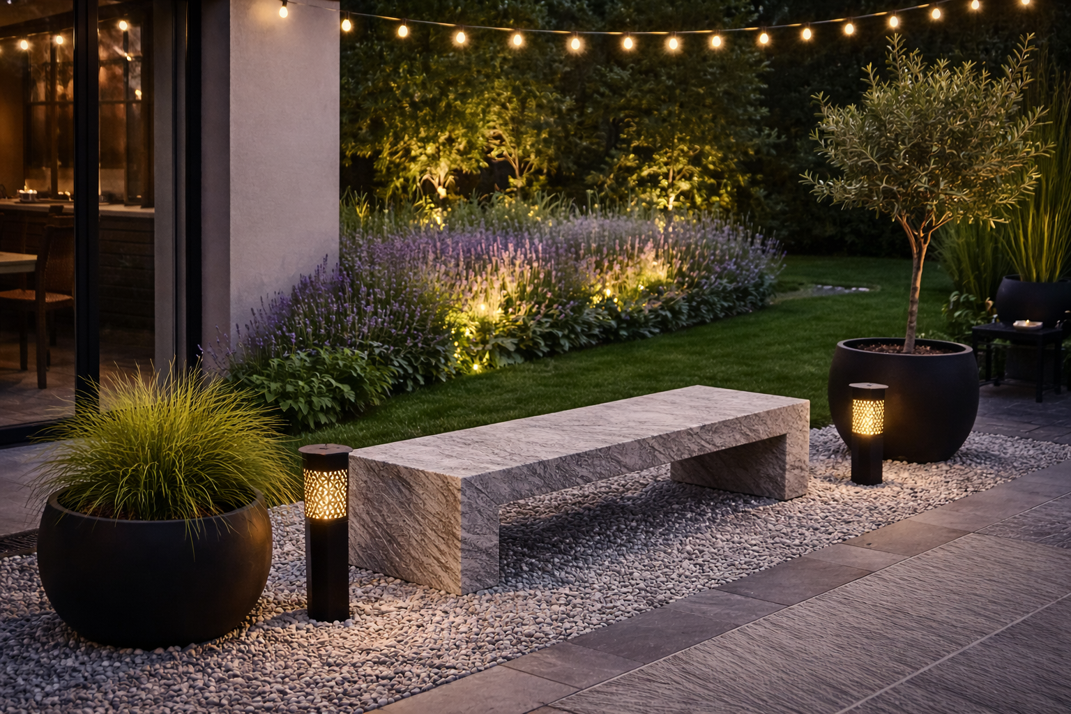 Ławka ogrodowa z granitu Viscount White- trwała, elegancka i odporna na warunki atmosferyczne, idealna do ogrodu, parku oraz przestrzeni publicznych.