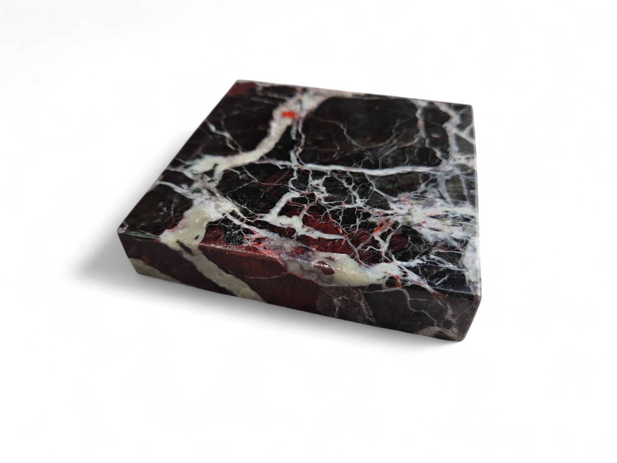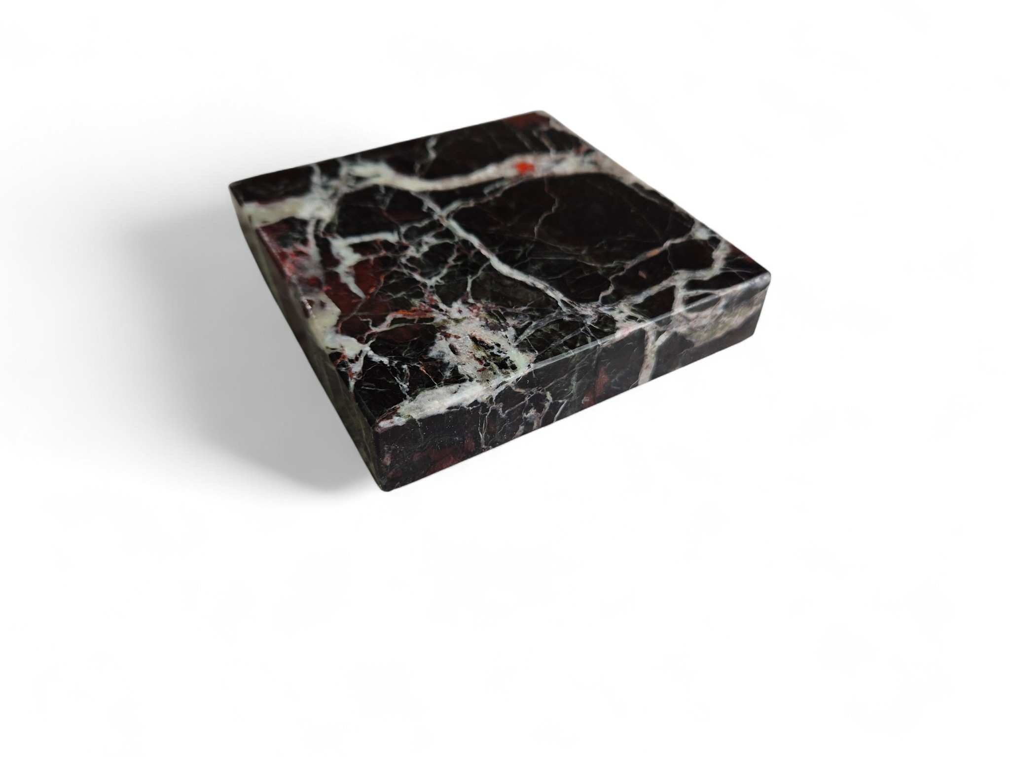 Podstawka pod figurkę lub statuetkę z naturalnego marmuru Rosso Levanto, wyróżniającego się głęboką kolorystyką oraz kontrastowym użyleniem w odcieniach czerni, bieli i czerwieni. Szlachetne wykończenie kamienia sprawia, że podstawka doskonale eksponuje figurki, statuetki oraz elementy dekoracyjne.
