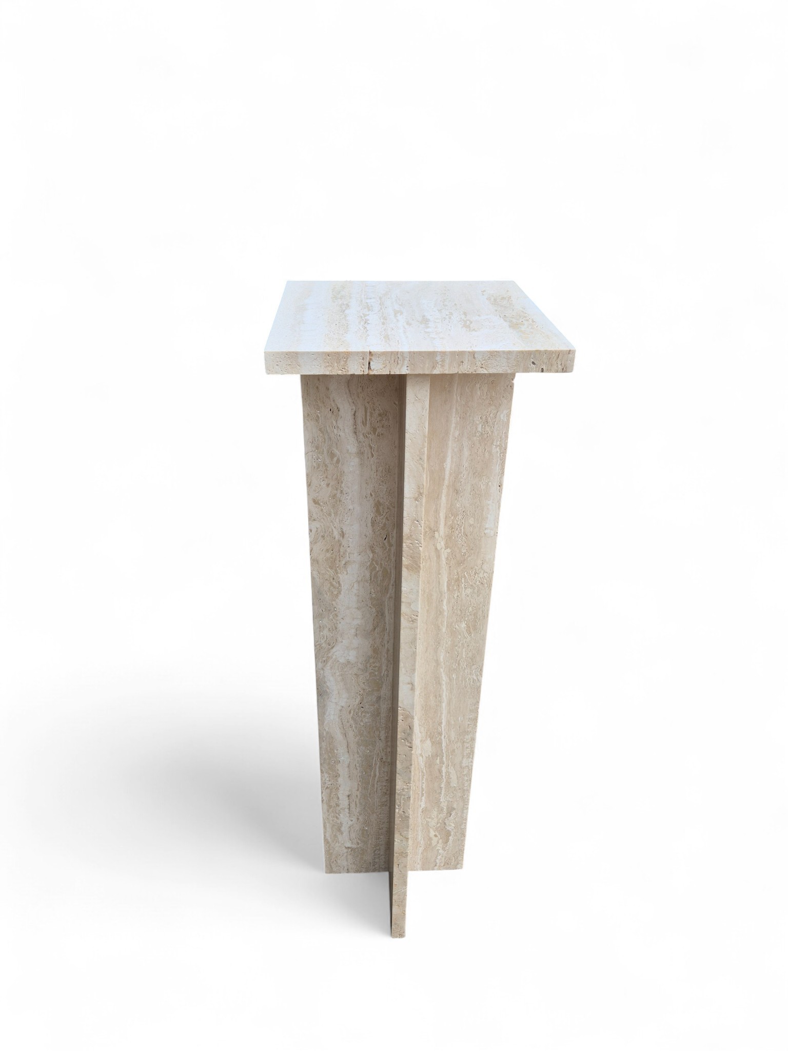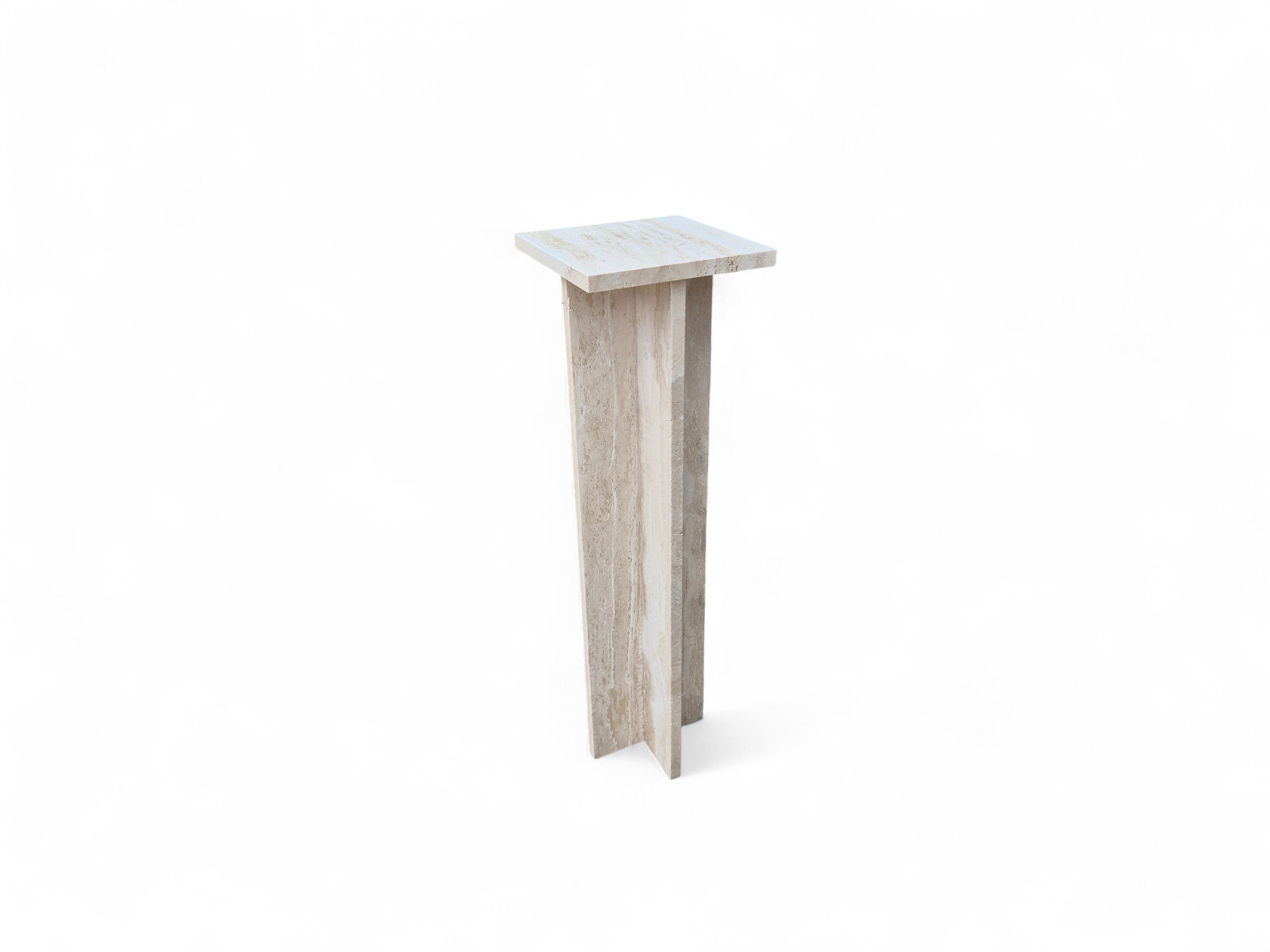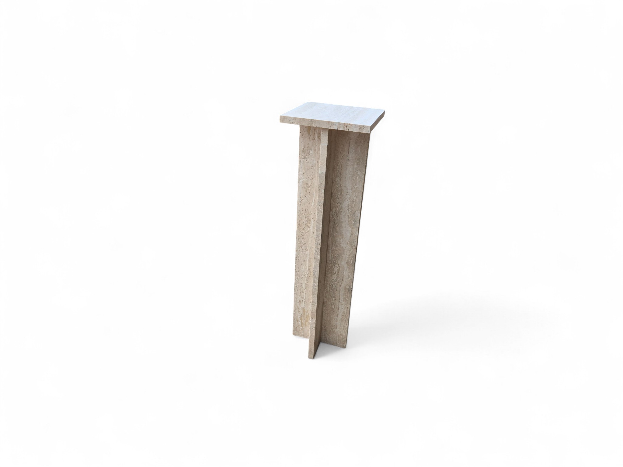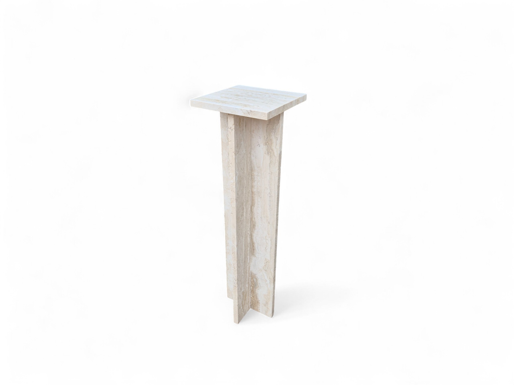 Postument z kamienia naturalnego trawertynu Romano Classico, charakteryzującego się ciepłymi odcieniami kremu i beżu. Smukła forma oraz matowe, szczotkowane wykończenie nadają produktowi ponadczasowy, architektoniczny charakter.