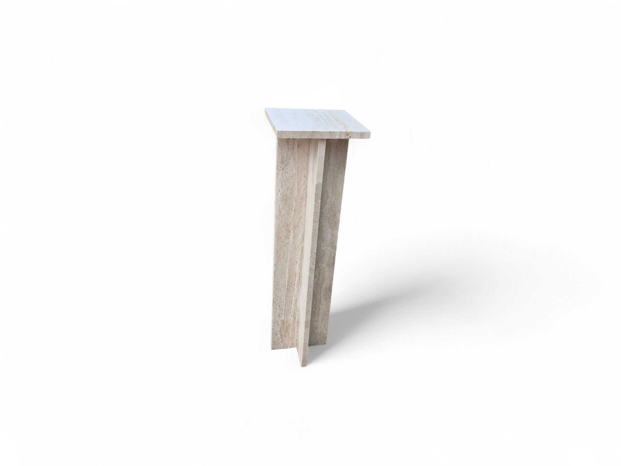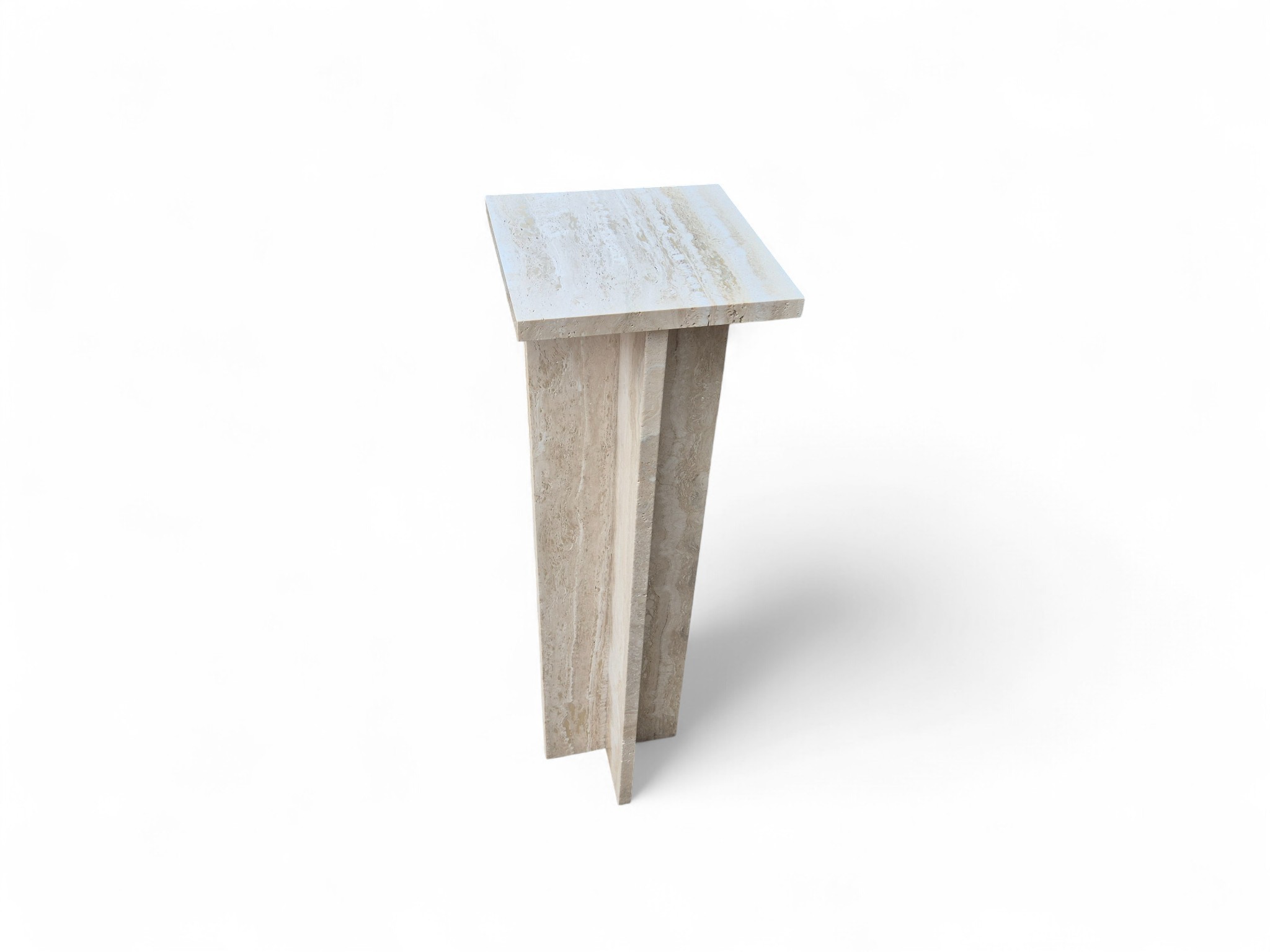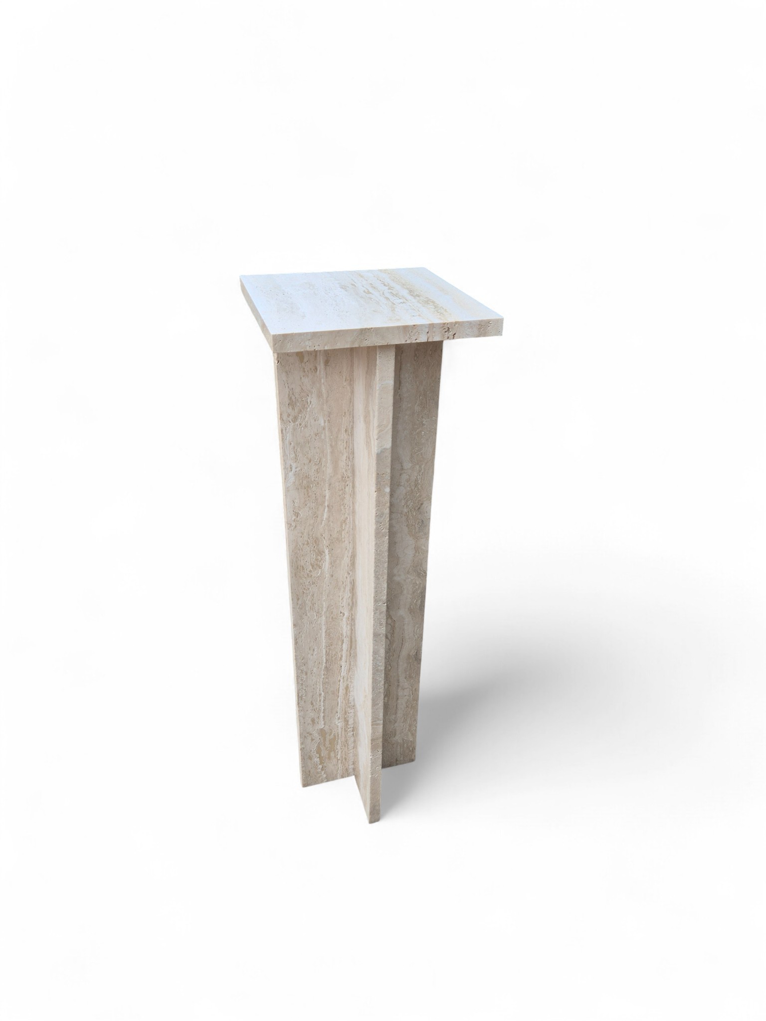 Postument z kamienia naturalnego trawertynu Romano Classico, charakteryzującego się ciepłymi odcieniami kremu i beżu. Smukła forma oraz matowe, szczotkowane wykończenie nadają produktowi ponadczasowy, architektoniczny charakter.