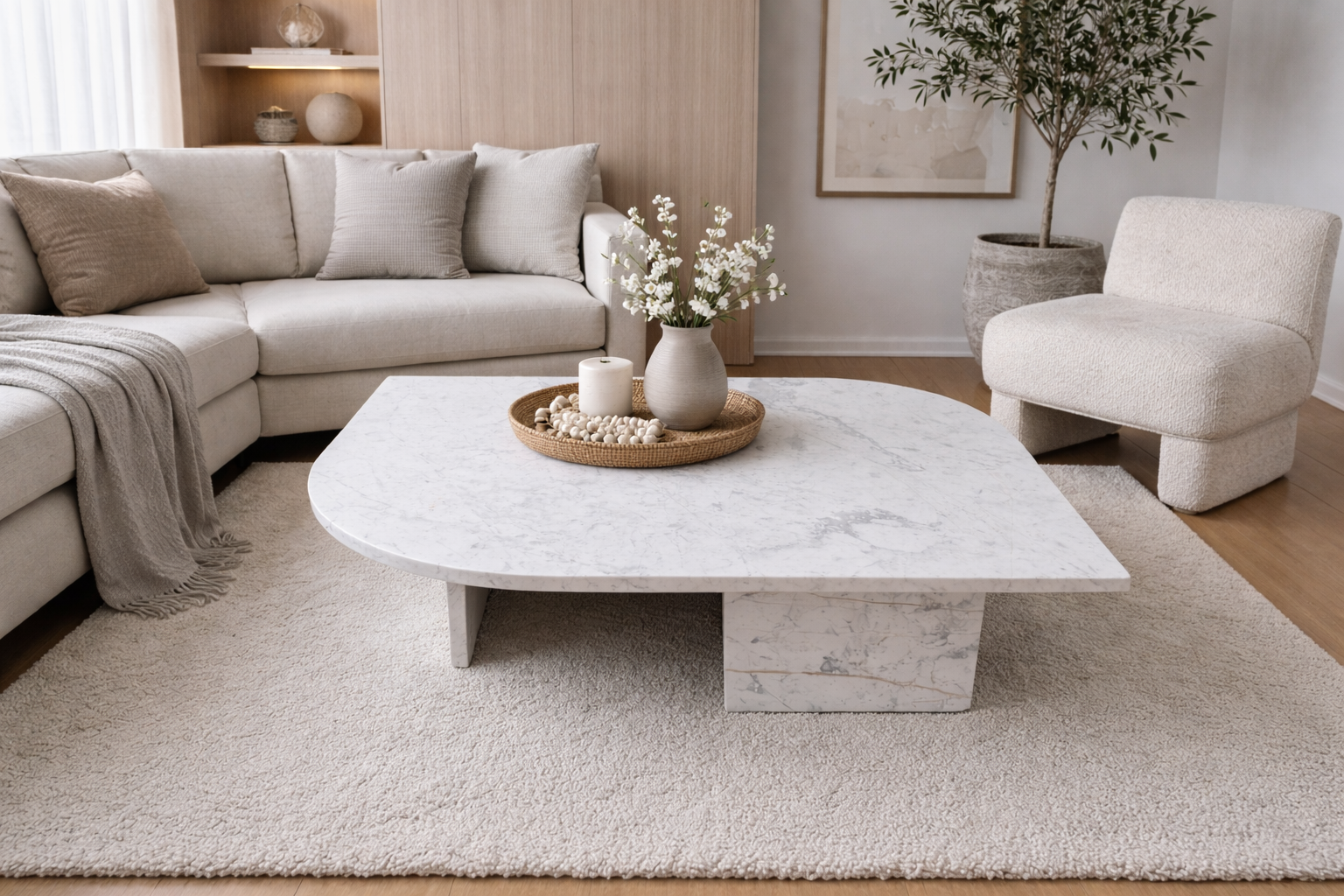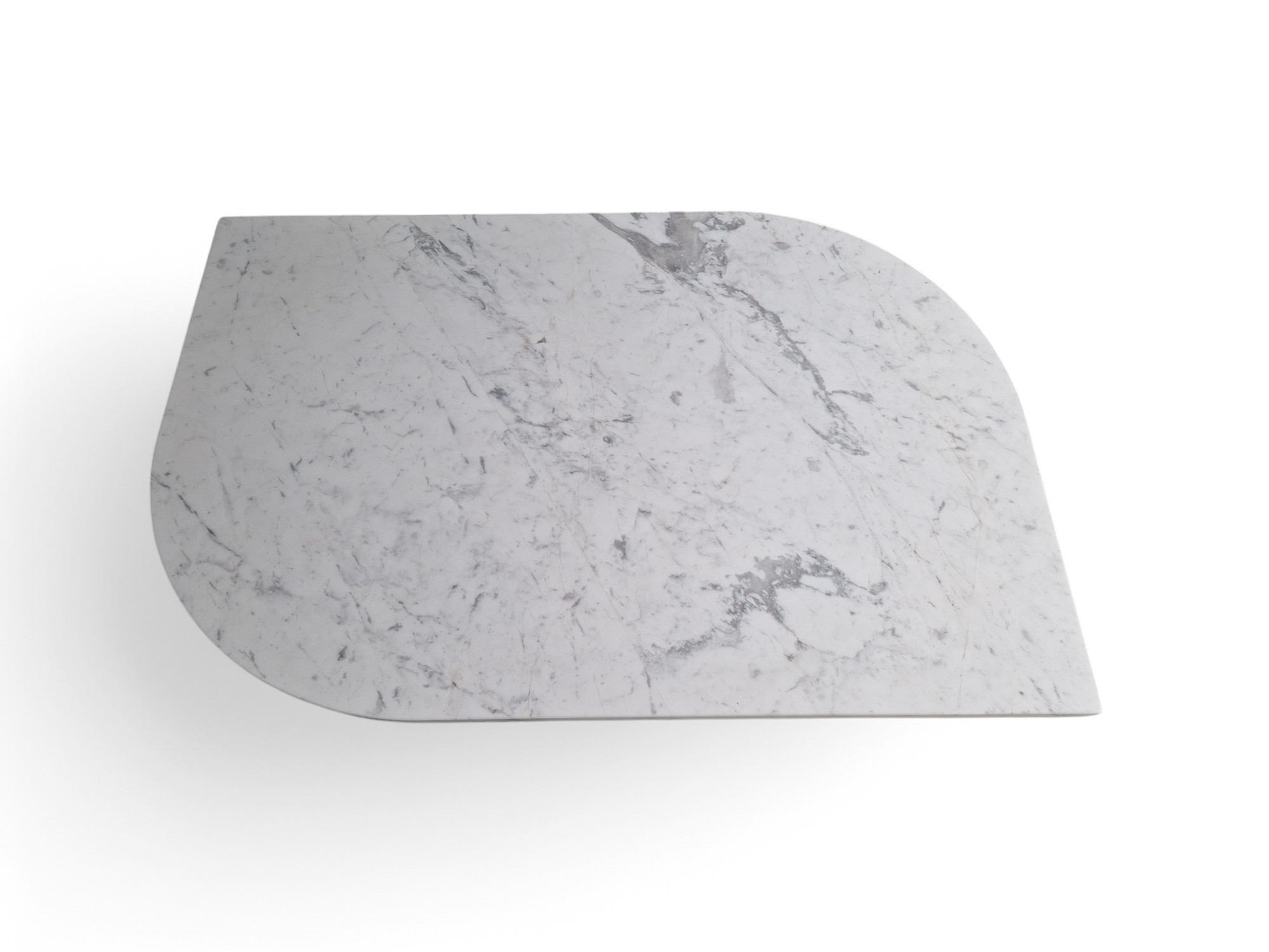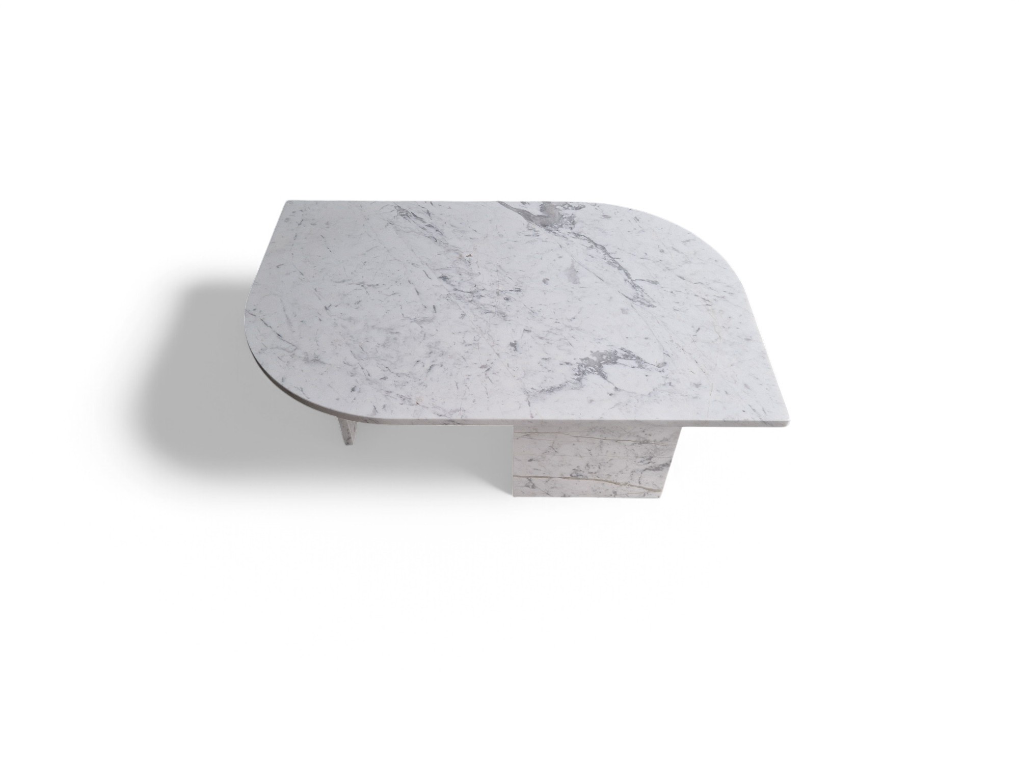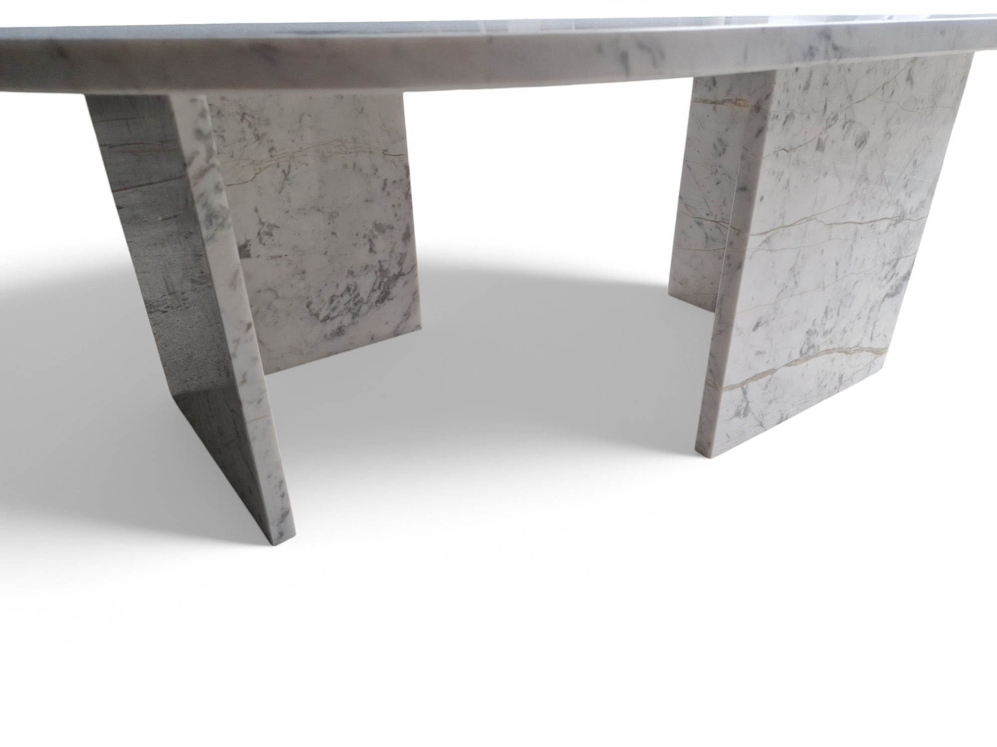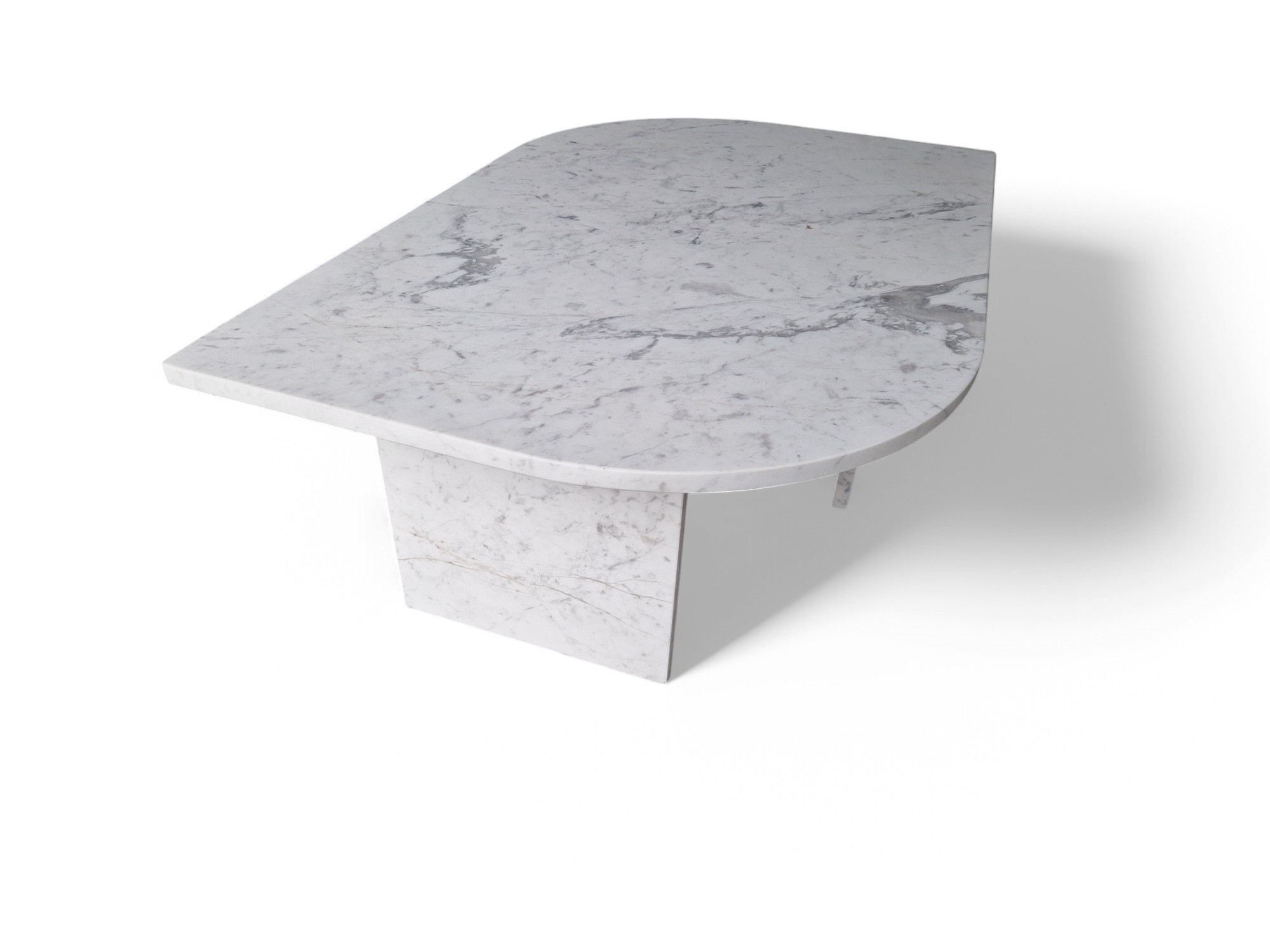 Biały stolik półowalny z marmuru Pirgon to elegancki i nowoczesny mebel wykonany z naturalnego kamienia pochodzącego z Włoch. Jasna kolorystyka z charakterystycznymi, nieregularnymi szarymi żyłkami nadaje stolikowi lekkości, a jednocześnie podkreśla unikatowy charakter marmuru.