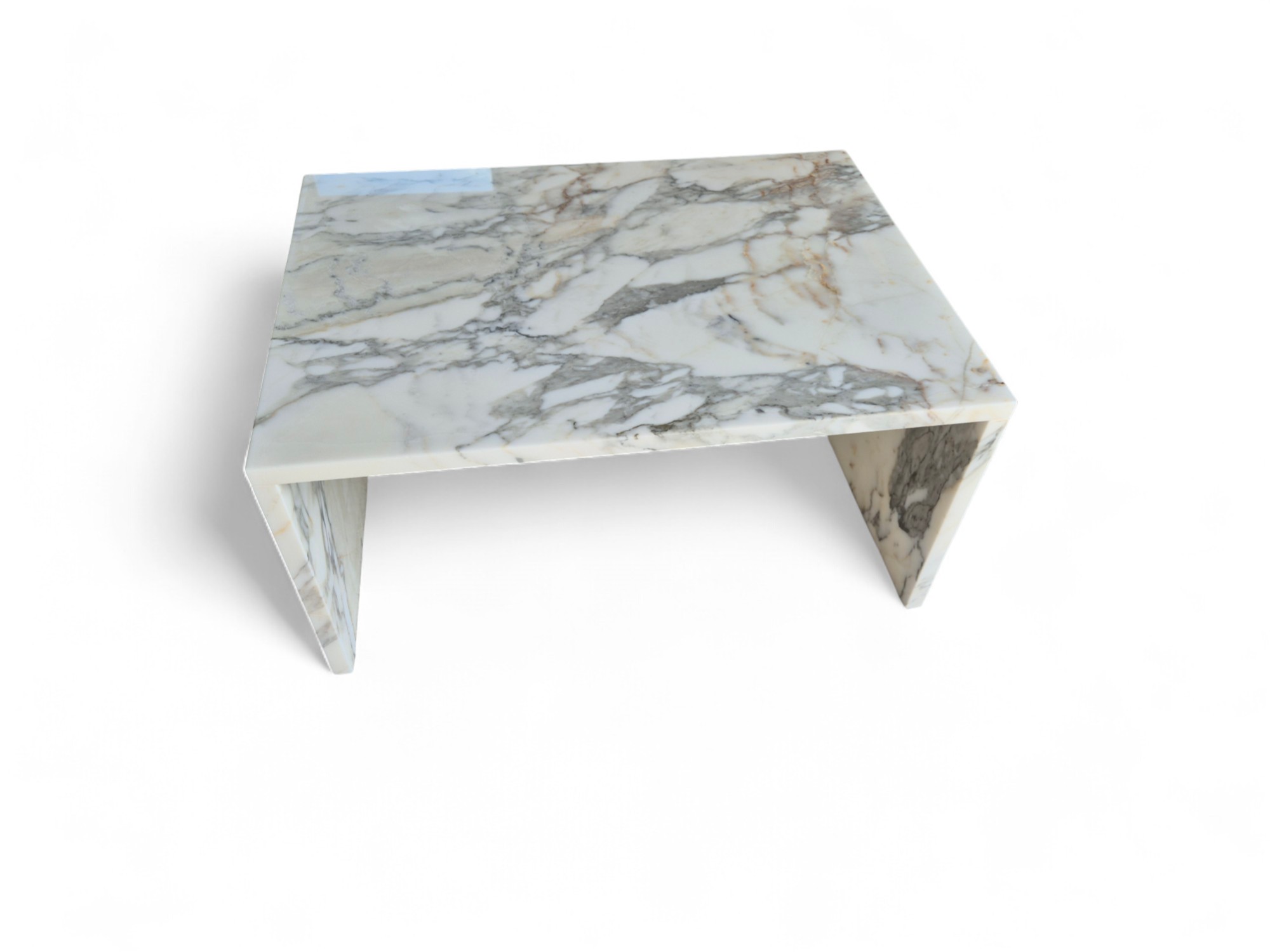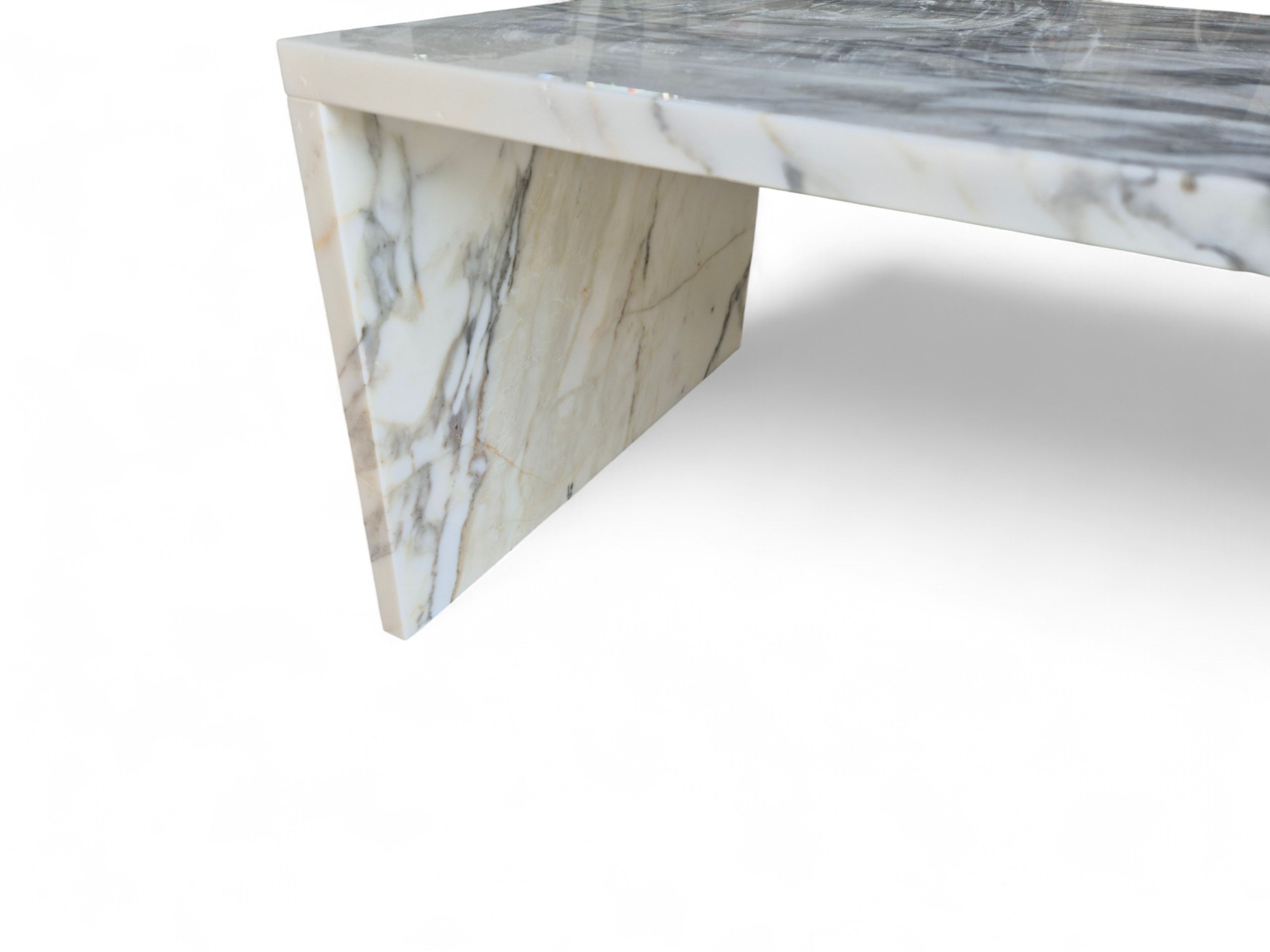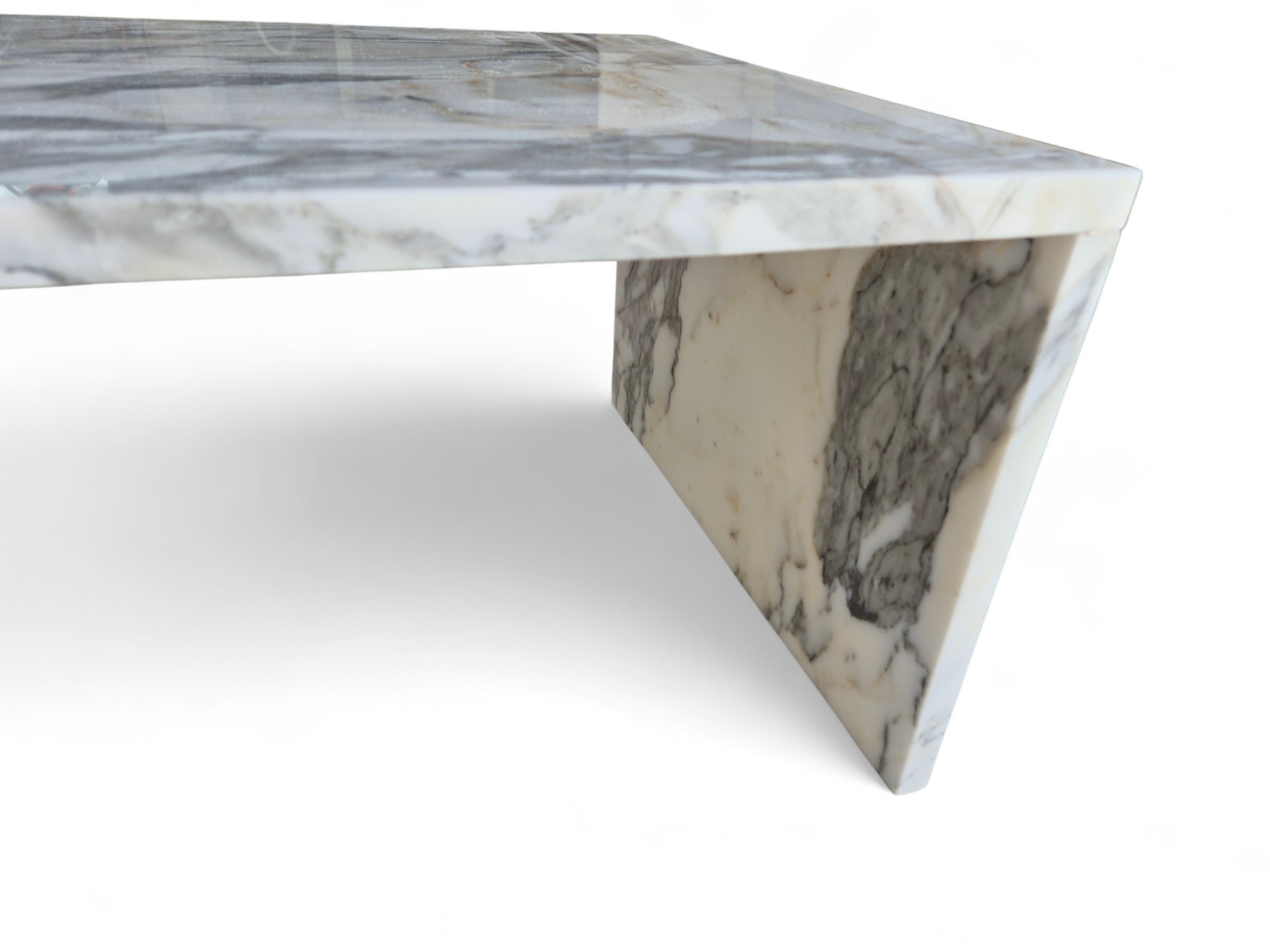 Ława z marmuru Arabescato Corchia to elegancki, dekoracyjny mebel wykonany z wyjątkowego marmuru o jasnej, mlecznobiałej tonacji z delikatnymi beżowymi i szarymi żyłkami.