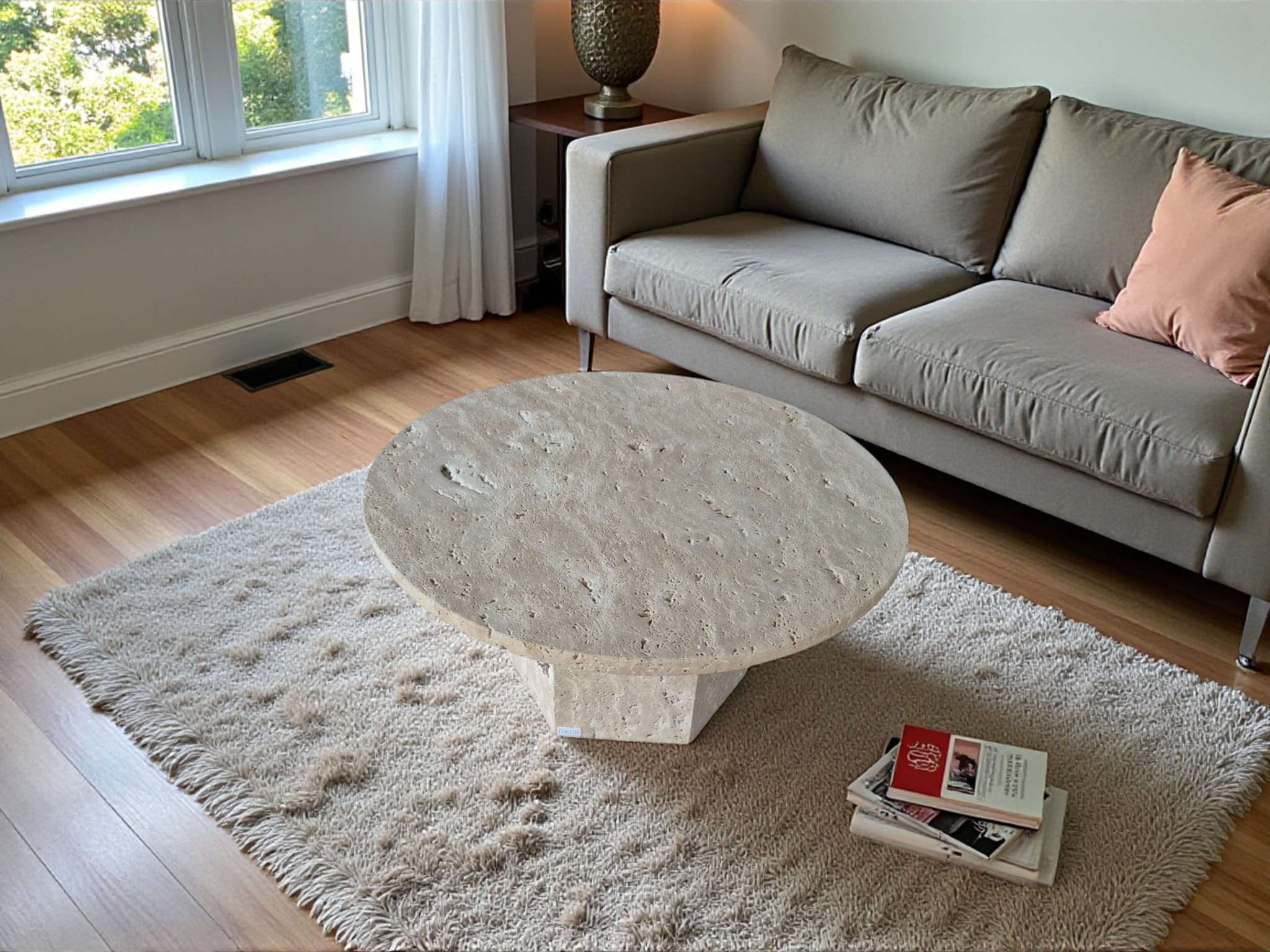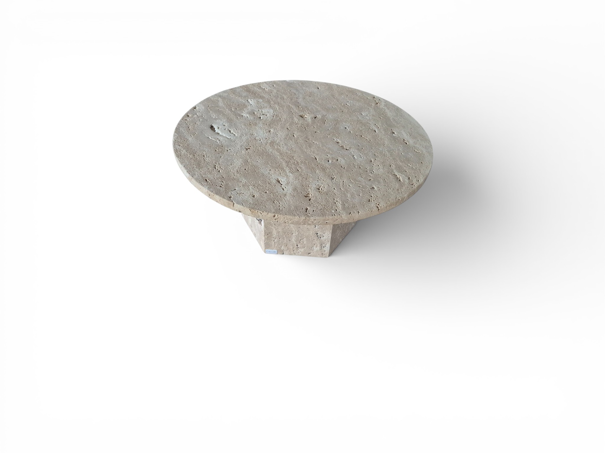 Niski stolik kawowy z trawertynu to minimalistyczny element wnętrza, inspirowany nowoczesnym i japandi designem. Niska forma oraz ciepłe, beżowe odcienie kamienia nadają aranżacji spokojny, naturalny charakter. Matowe wykończenie podkreśla autentyczną strukturę trawertynu i jego surową elegancję.