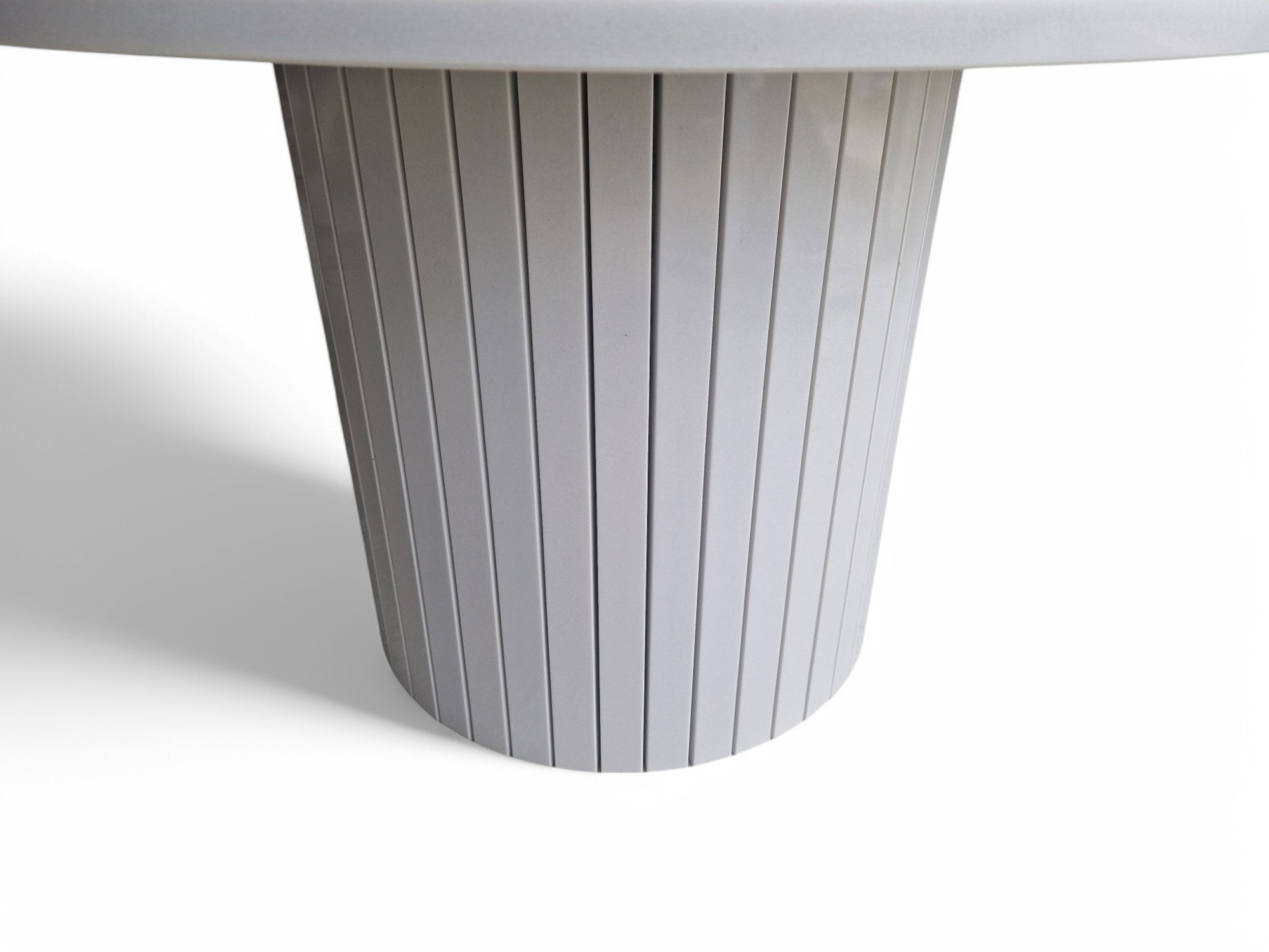 - Podstawa: ryflowana, wykonana z pasków kamienia, dostosowana do średnicy blatu,