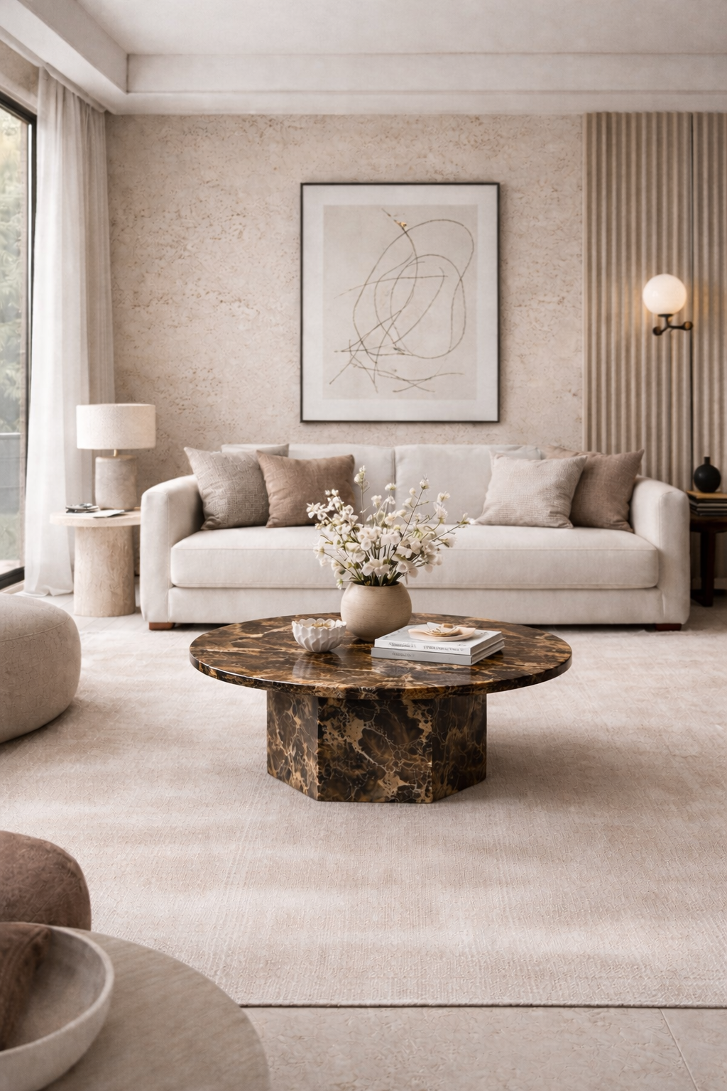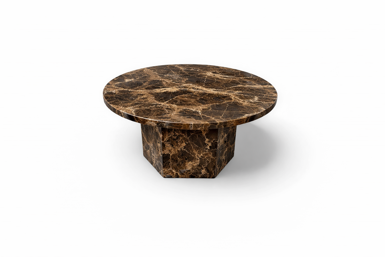 Stolik kawowy z marmuru Emperador Dark to elegancki i wyrazisty element wnętrza, który podkreśla luksusowy charakter aranżacji.