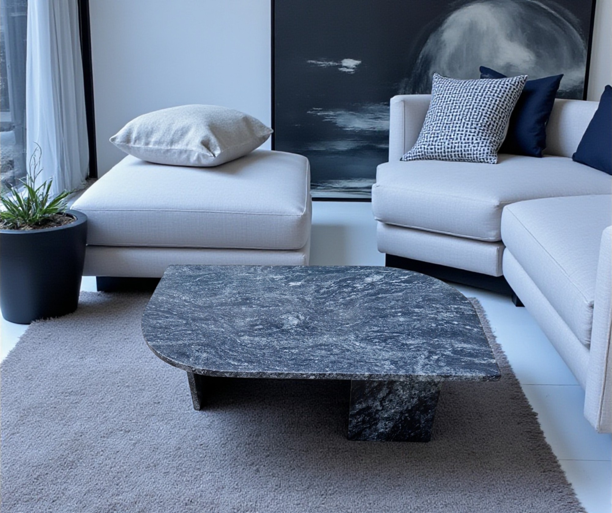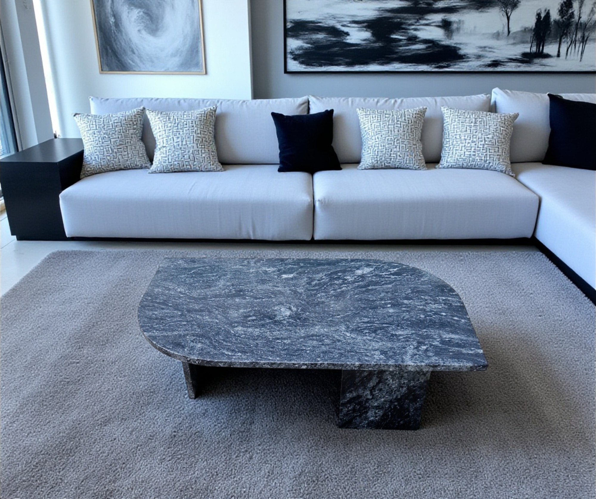 Stolik kawowy z granitu Black Forest to solidny i wyrazisty mebel wykonany z naturalnego kamienia. Dzięki wysokiej twardości granitu oraz polerowanemu wykończeniu stolik doskonale sprawdzi się zarówno we wnętrzach, jak i w przestrzeniach zewnętrznych.