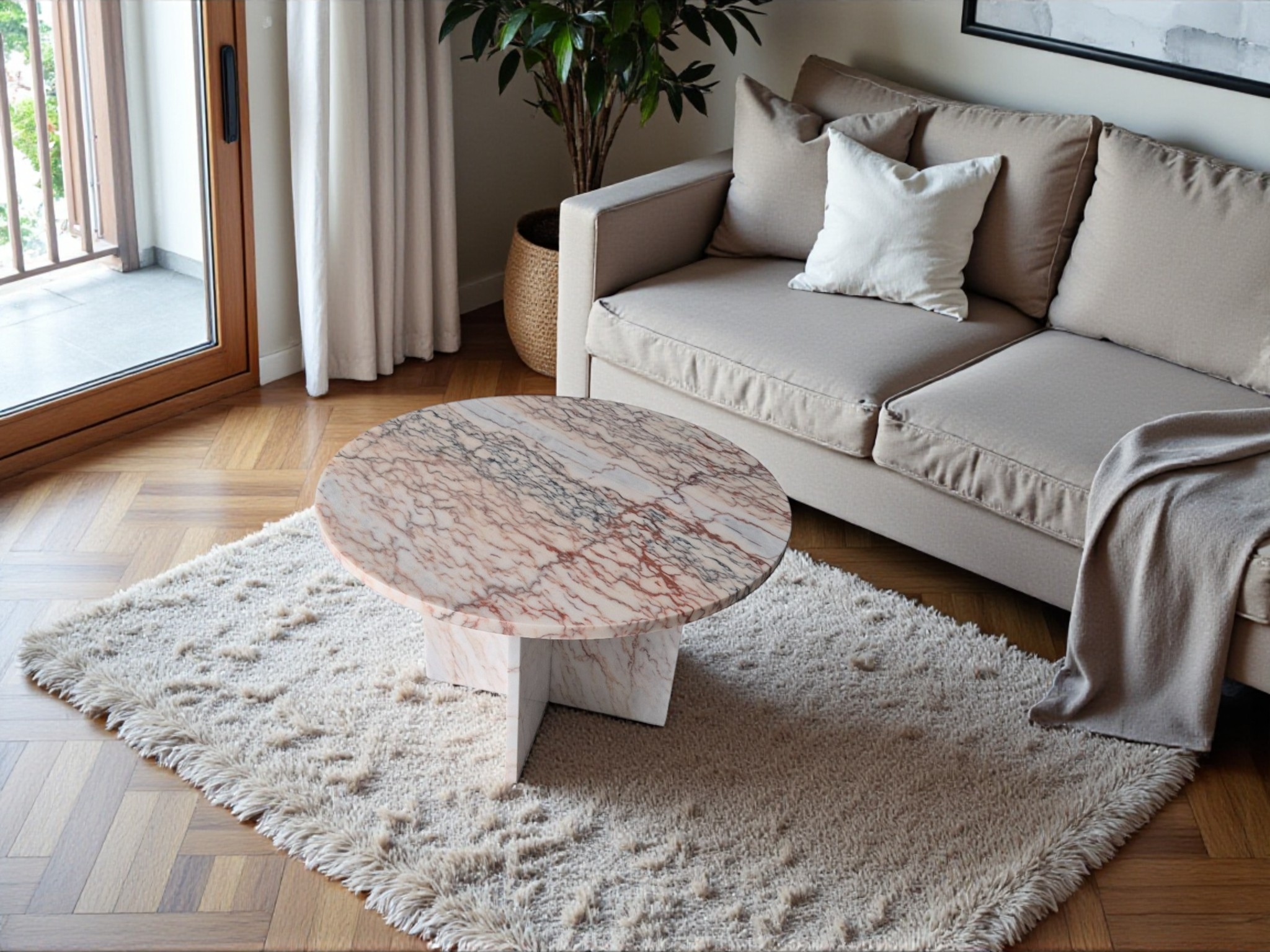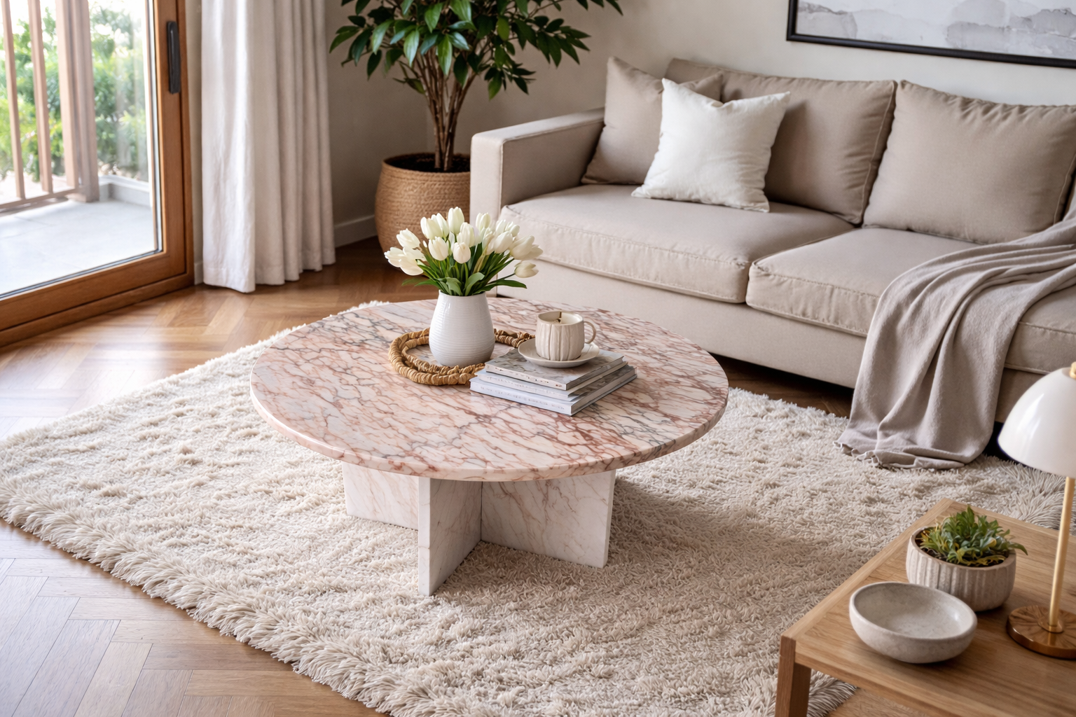 Stolik kawowy z różowego marmuru