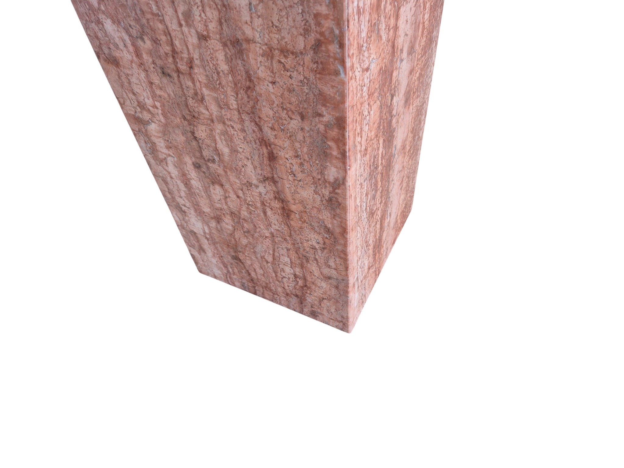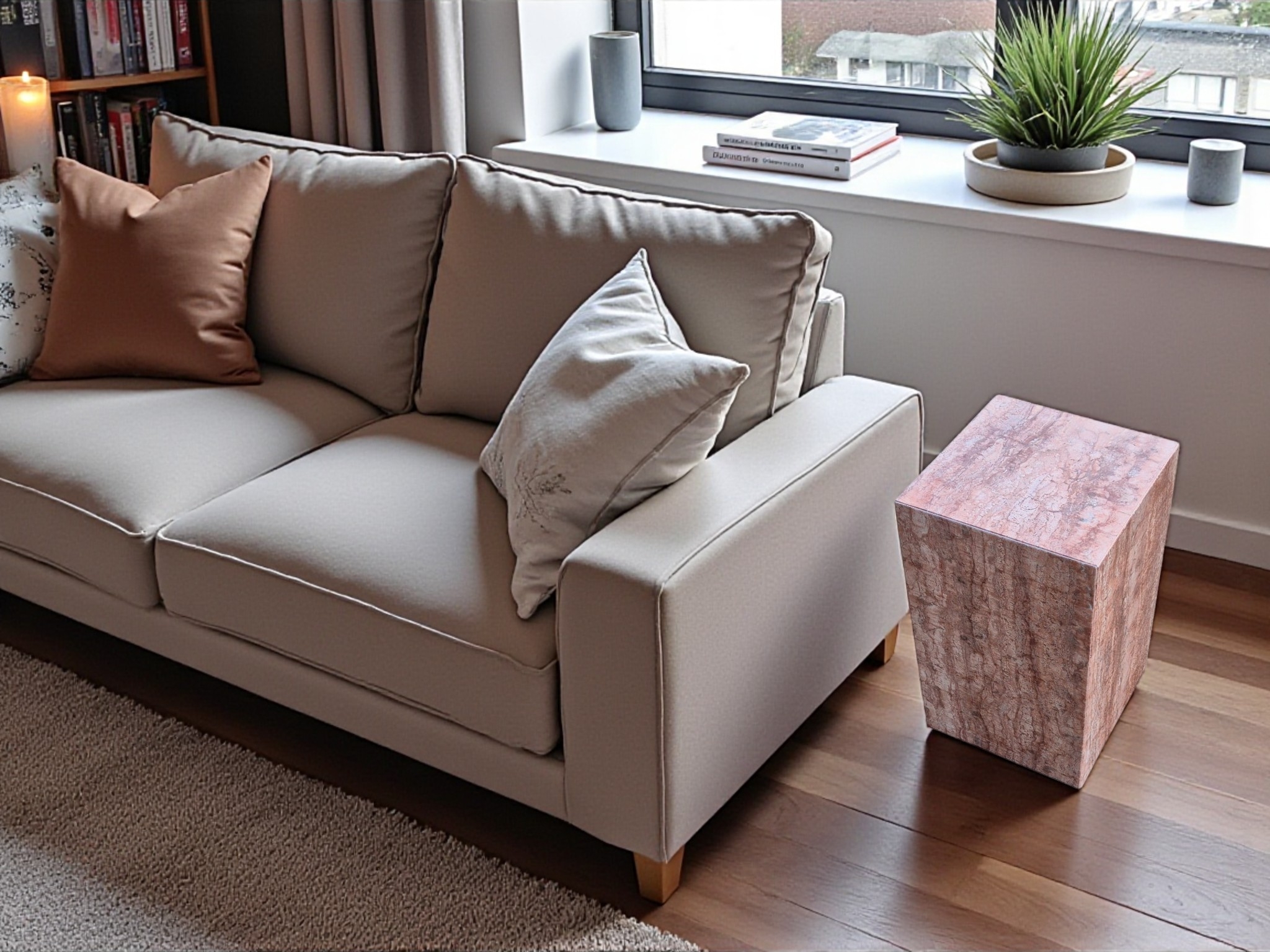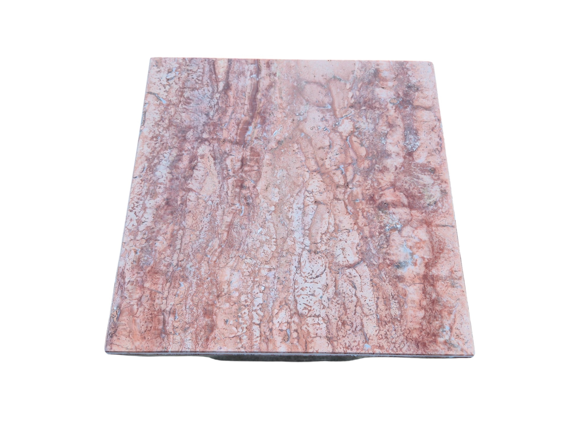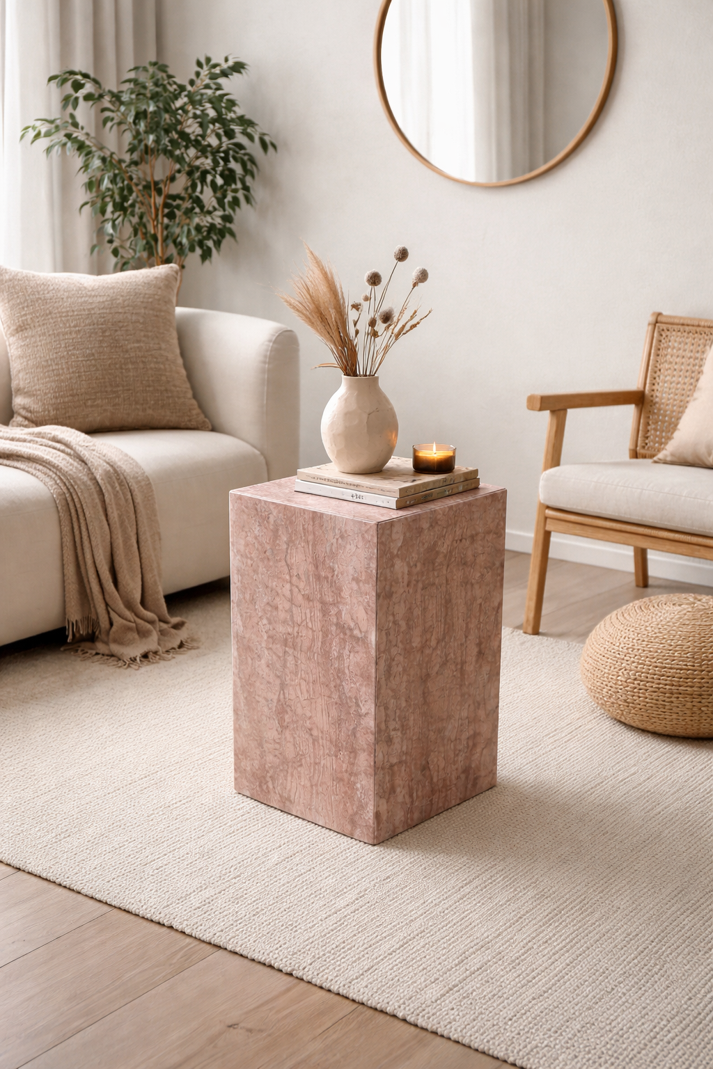 Stolik pomocniczy różowy Barbie to wyrazisty, a jednocześnie elegancki element wnętrza. Ciepłe odcienie różu, przełamane subtelnymi kremowymi i mlecznymi żyłkami, nadają mu dekoracyjny charakter i sprawiają, że doskonale sprawdza się jako akcent we wnętrzach nowoczesnych, minimalistycznych oraz art-deco.