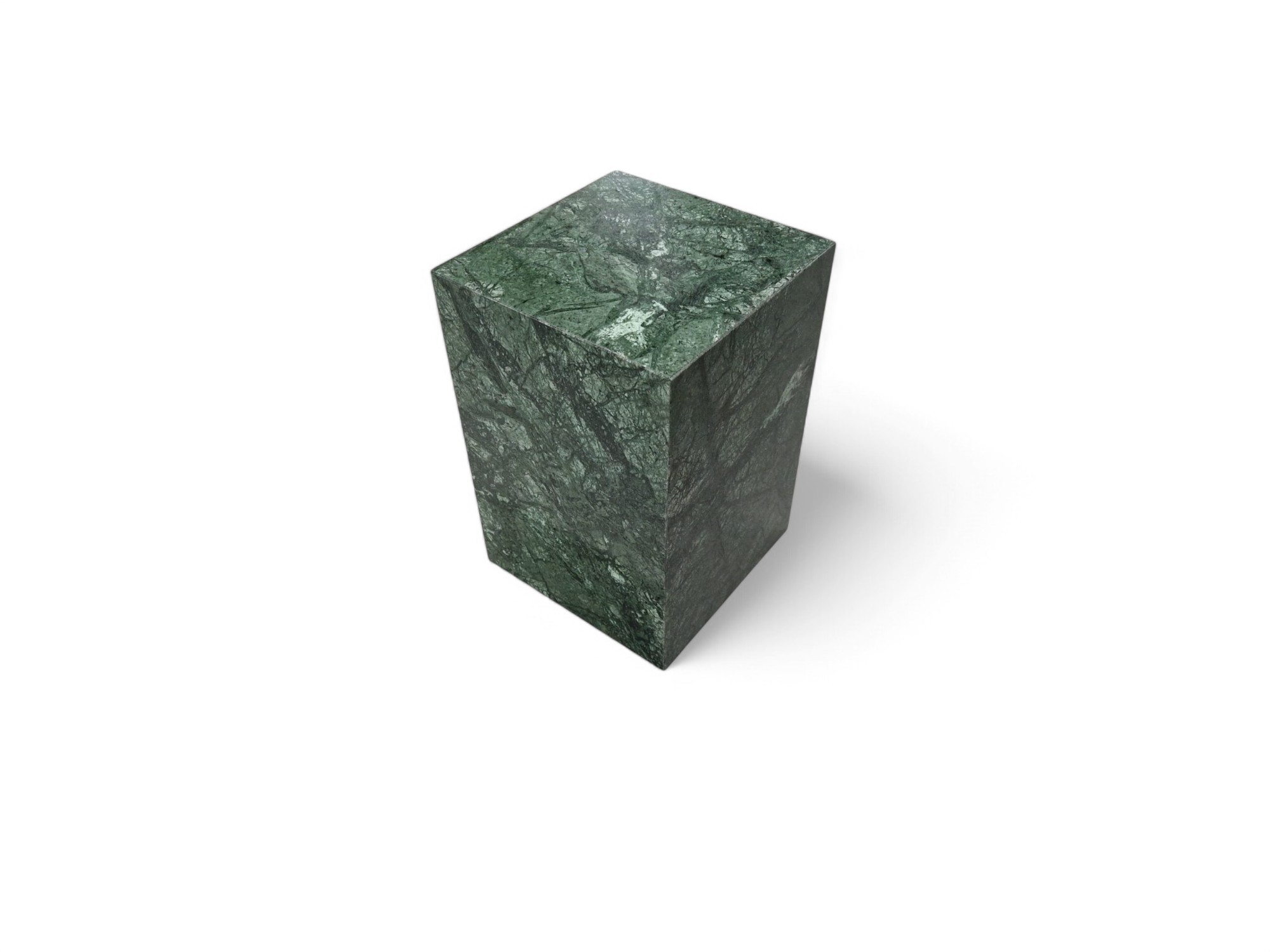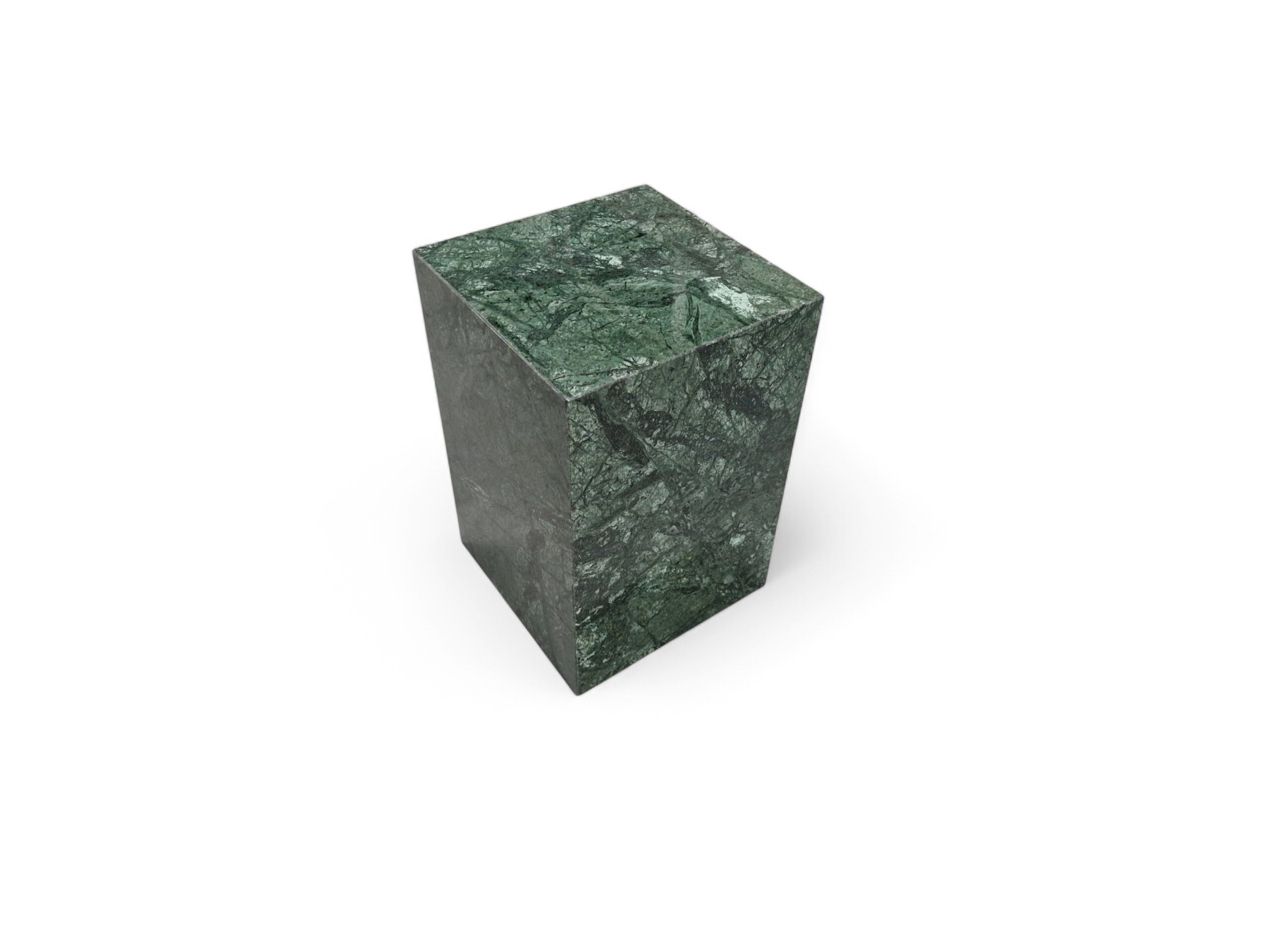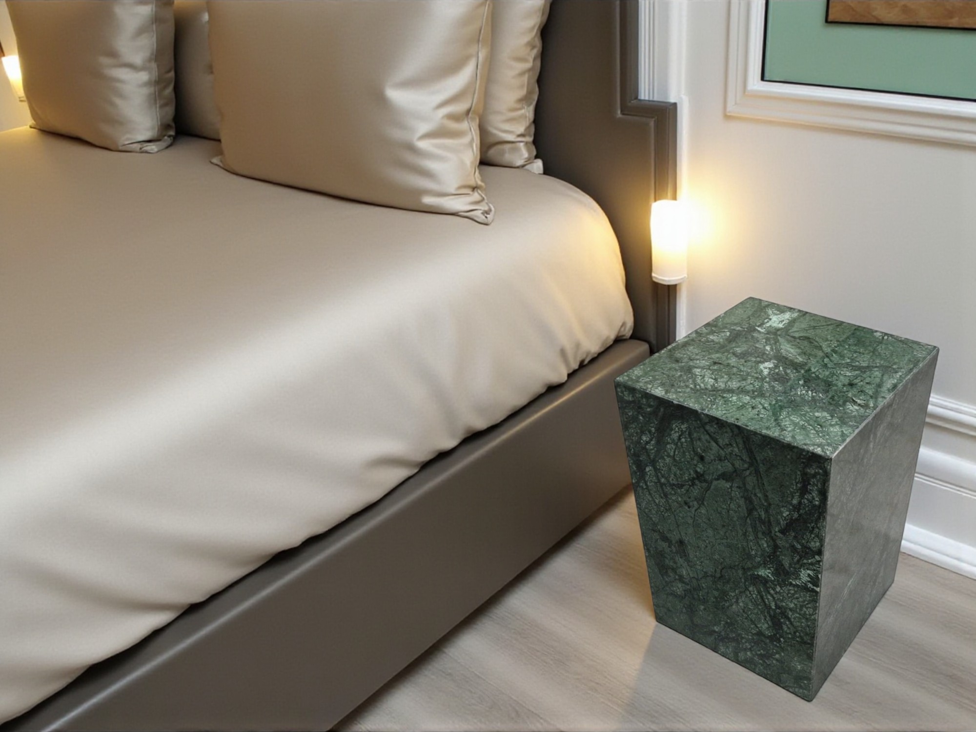 Stolik pomocniczy z zielonego marmuru Verde Gwatemala to wyrazisty i elegancki mebel wykonany z naturalnego kamienia o głębokiej, zielonej kolorystyce.