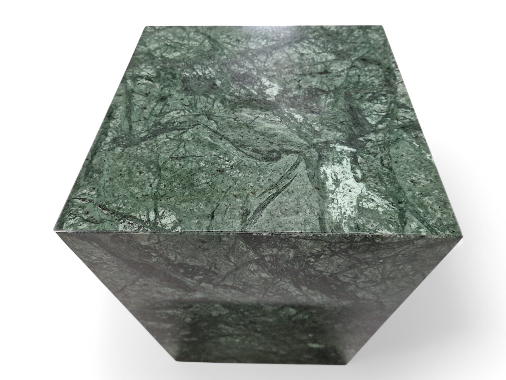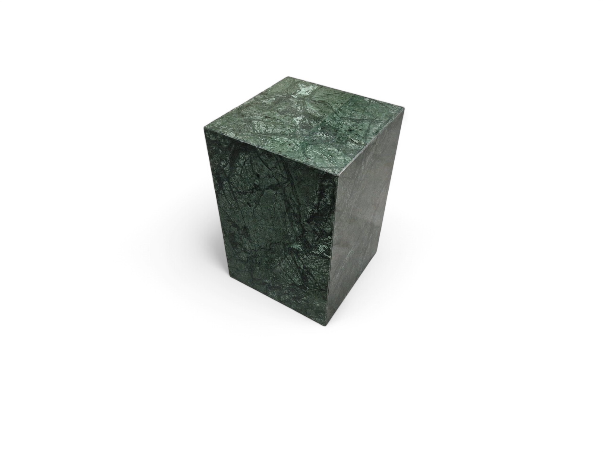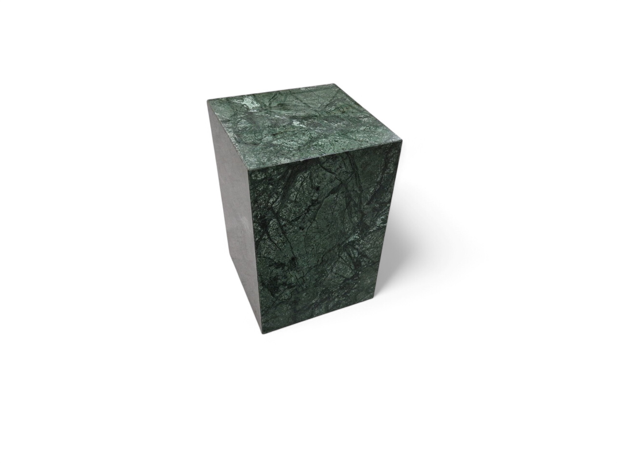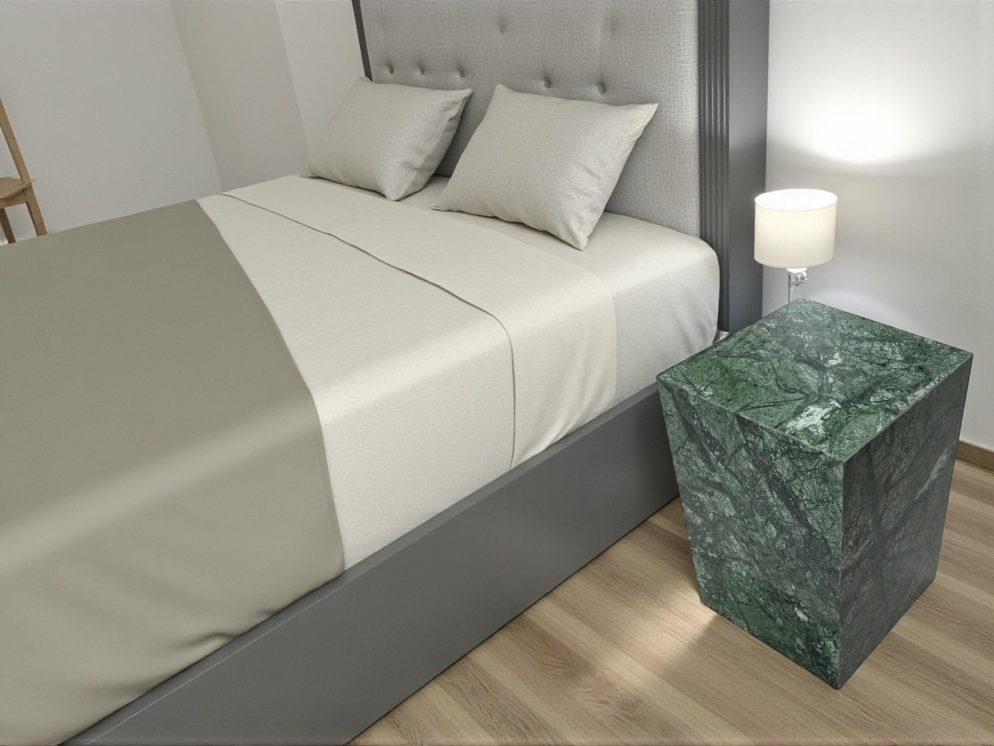 Stolik pomocniczy z zielonego marmuru Verde Gwatemala to wyrazisty i elegancki mebel wykonany z naturalnego kamienia o głębokiej, zielonej kolorystyce.