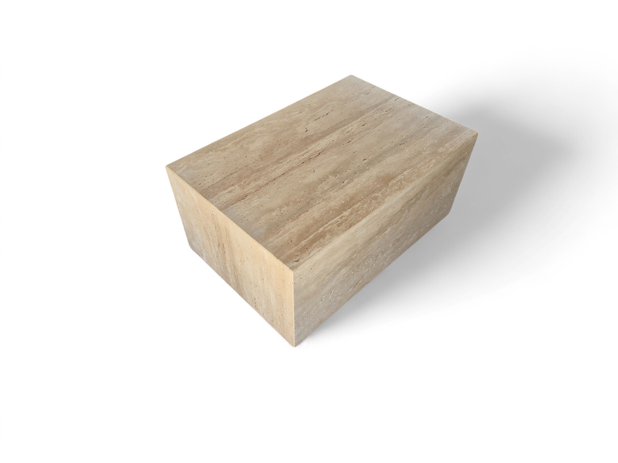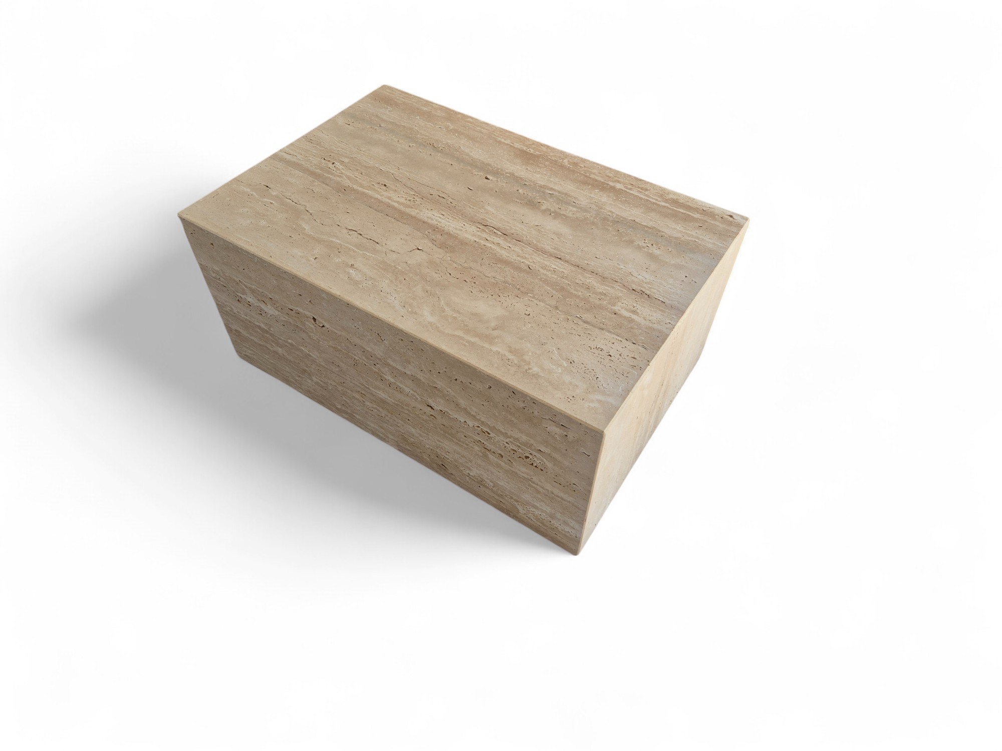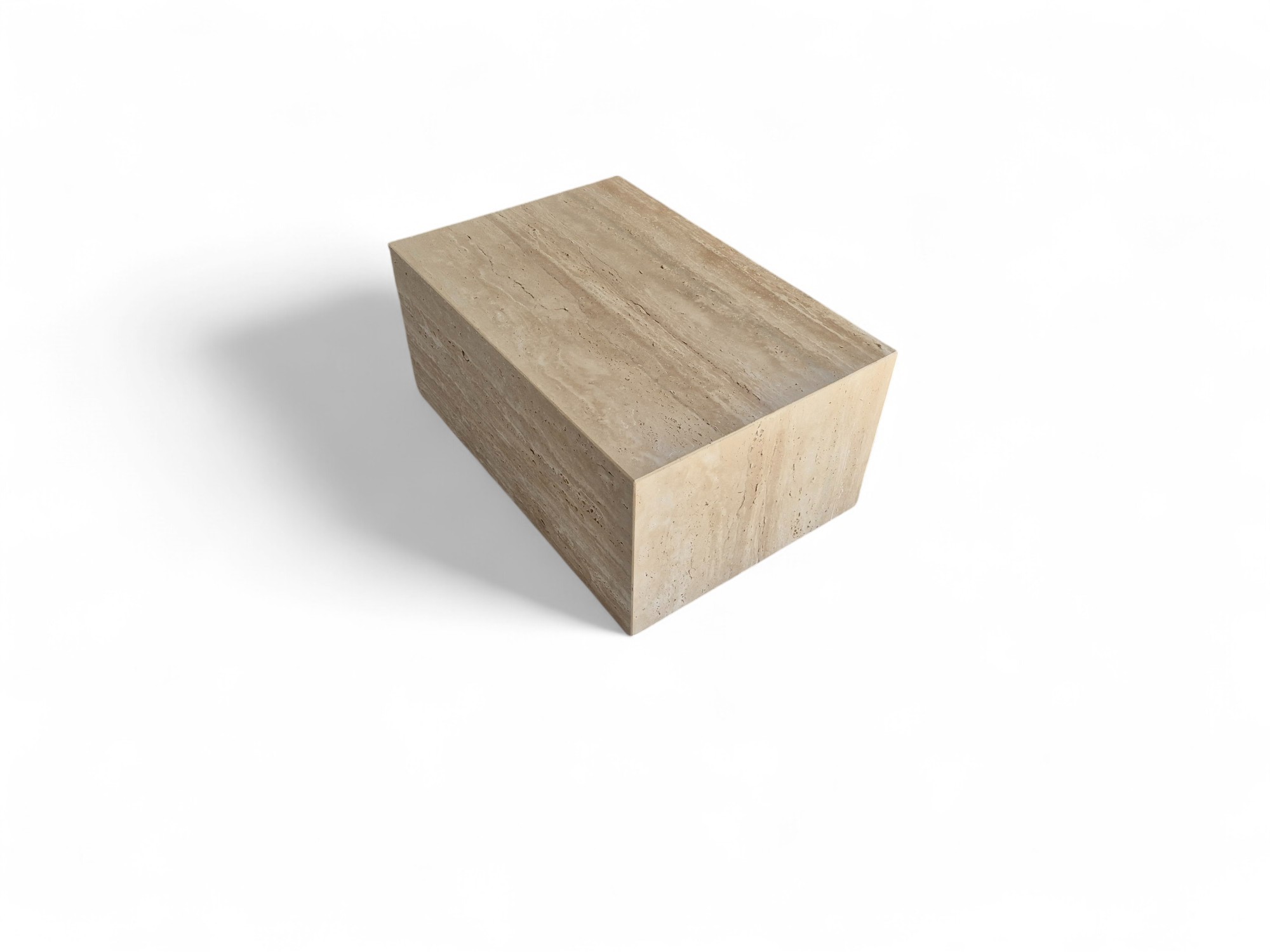 Stolik typu cube z naturalnego trawertynu Ivory to masywny, minimalistyczny mebel o wyrazistej, bryłowej formie. Kremowo-beżowa kolorystyka i matowe wykończenie podkreślają naturalny charakter kamienia, dzięki czemu stolik doskonale wpisuje się w spokojne, eleganckie wnętrza.