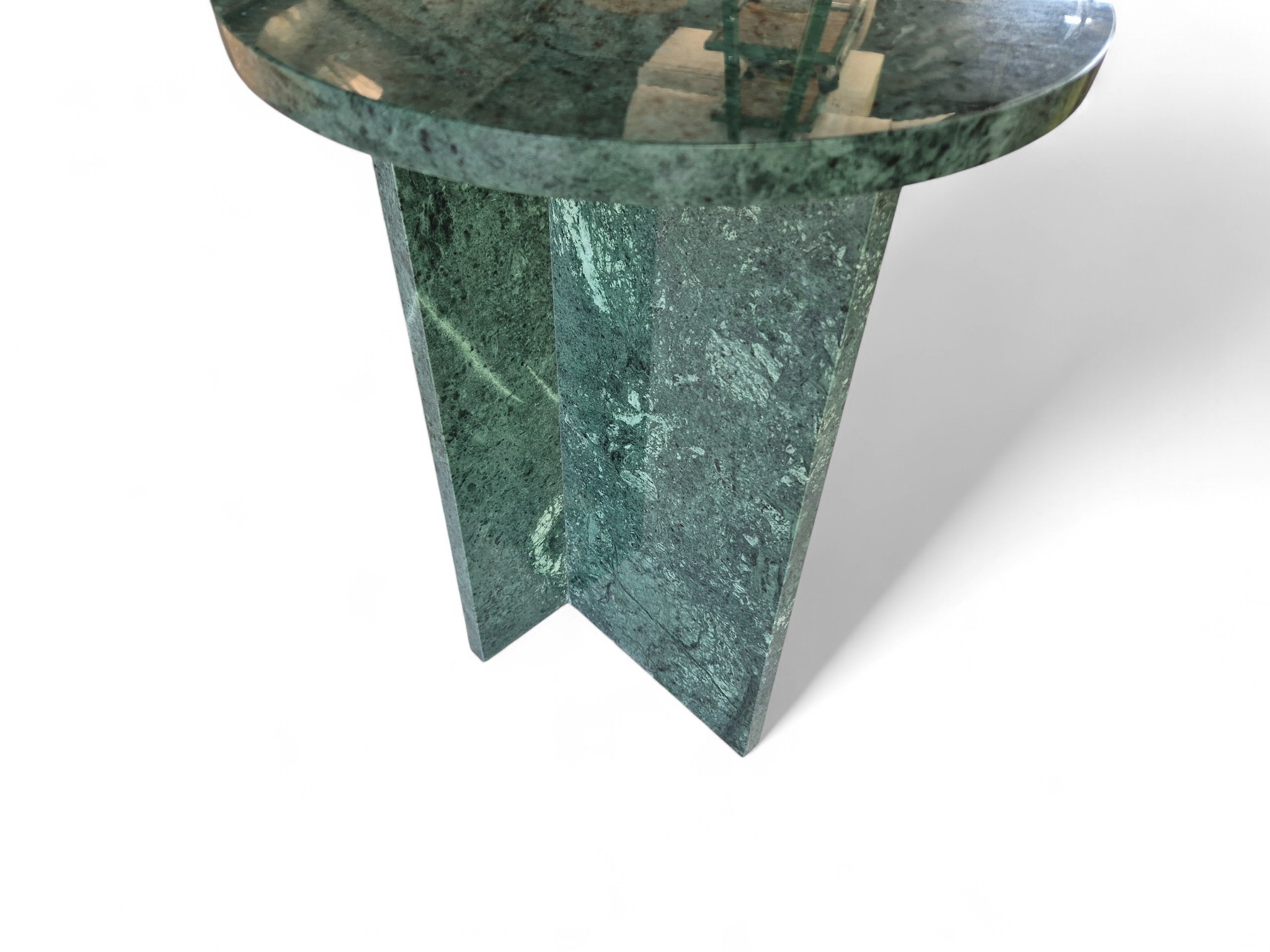 Zielony stolik nocny z naturalnego marmuru Verde Gwatemala, wyróżniającego się głębokimi odcieniami zieleni. Prosta, nowoczesna forma oraz lustrzany połysk powierzchni nadają meblowi luksusowy charakter.