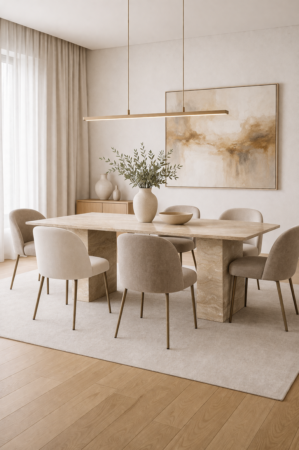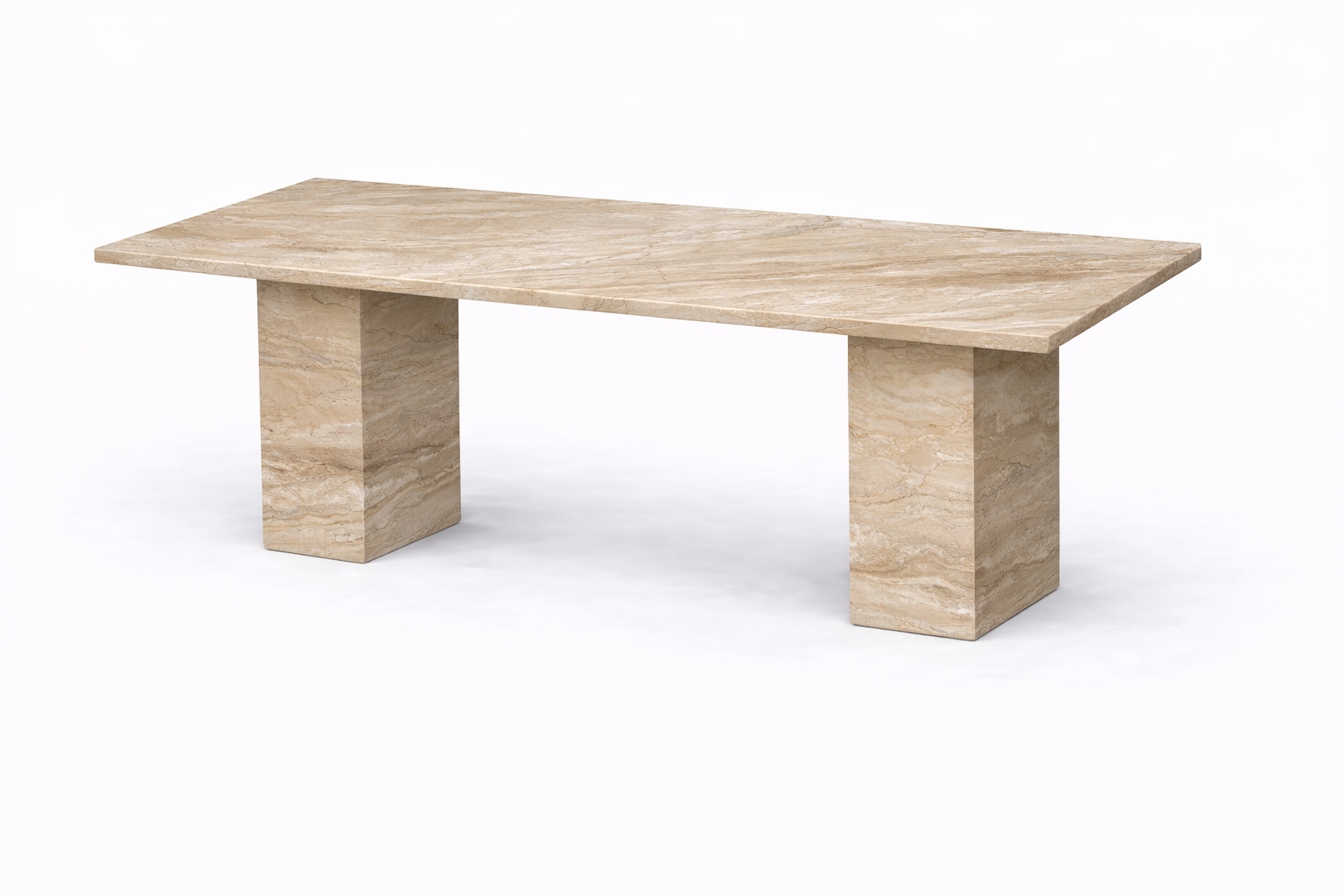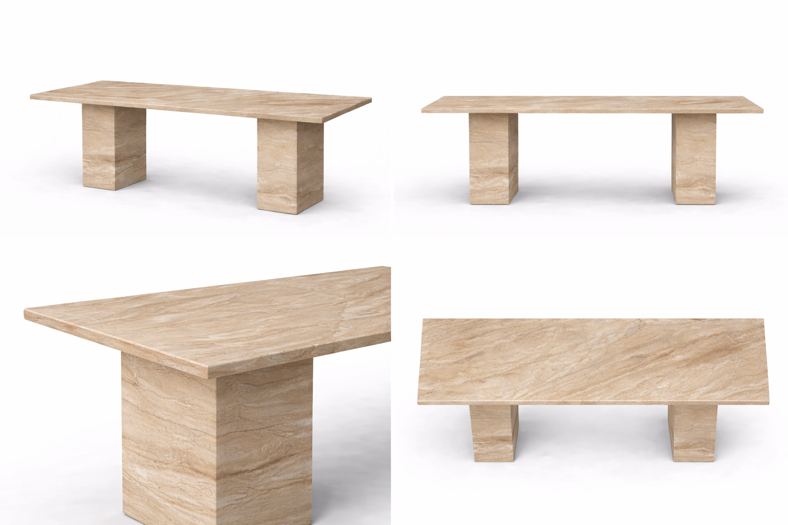 Stół jadalniany z naturalnego kamienia Daino Reale to elegancka propozycja do wnętrz, w których liczy się ponadczasowy styl i luksusowe wykończenie. Ciepłe, beżowe odcienie oraz charakterystyczne użylenie kamienia nadają przestrzeni wyjątkowy, harmonijny charakter.