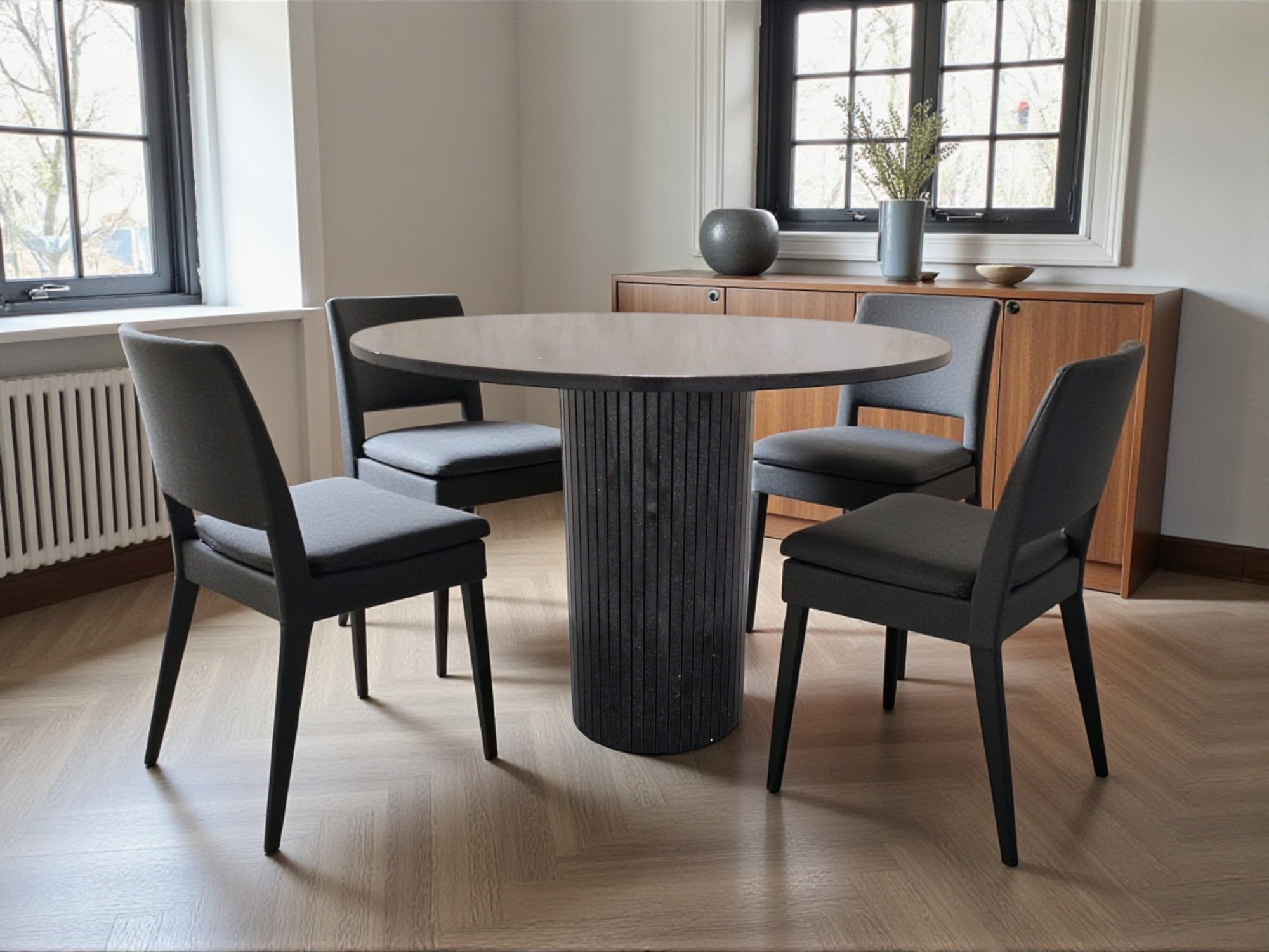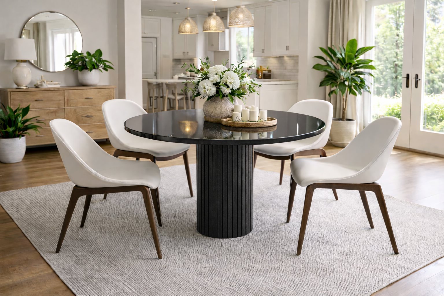 Stół Star Galaxy okrągły granitowy czarny to wyjątkowo solidny i elegancki mebel wykonany z naturalnego granitu pochodzącego z Indii. Głęboka czerń z charakterystycznymi złotymi drobinkami oraz lustrzany połysk nadają stołowi luksusowy, reprezentacyjny charakter.